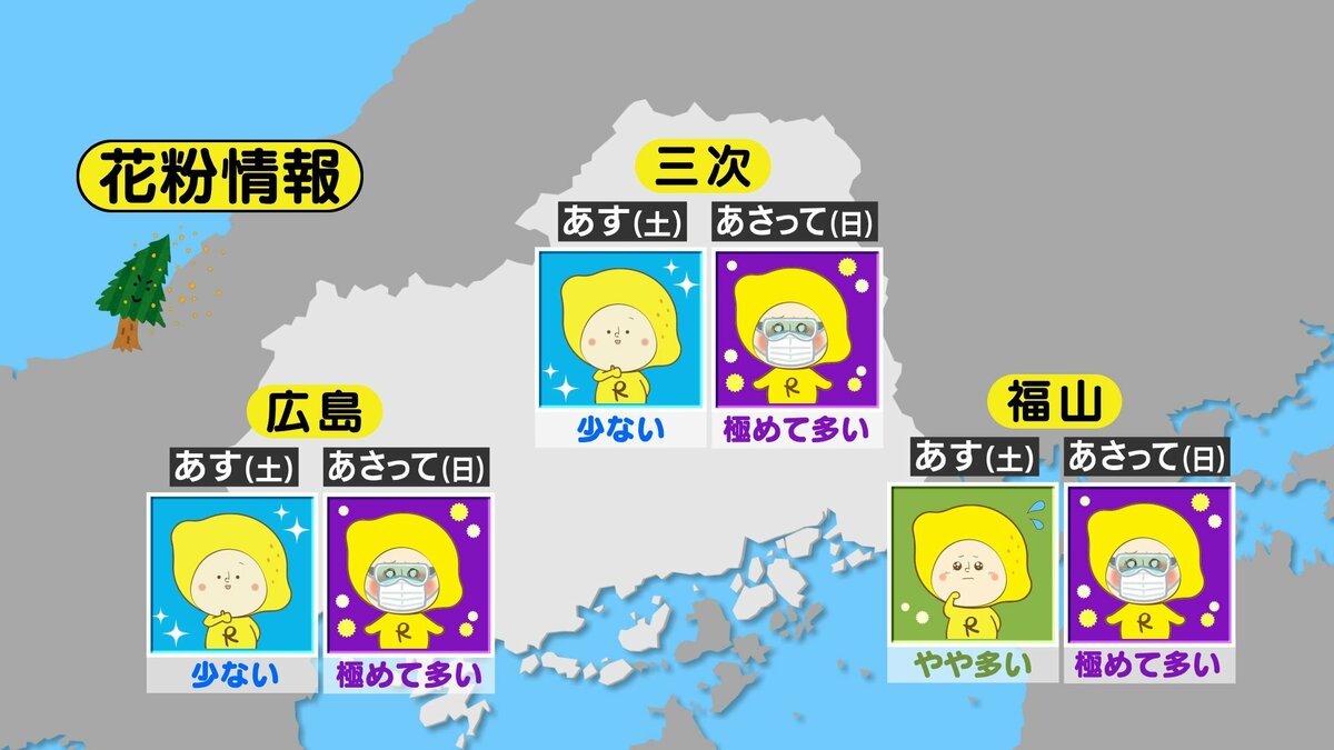 あさって5日(日)は、天気を崩した前線や低気圧は離れ、晴れ間が期待できそうです。日中は日差しが暖かく、お出かけ日和となる見込みです。花粉は「極めて多い」予想です。黄砂もやや飛来する見込みです。アレルギー体質の人は対策をしてお過ごしください。