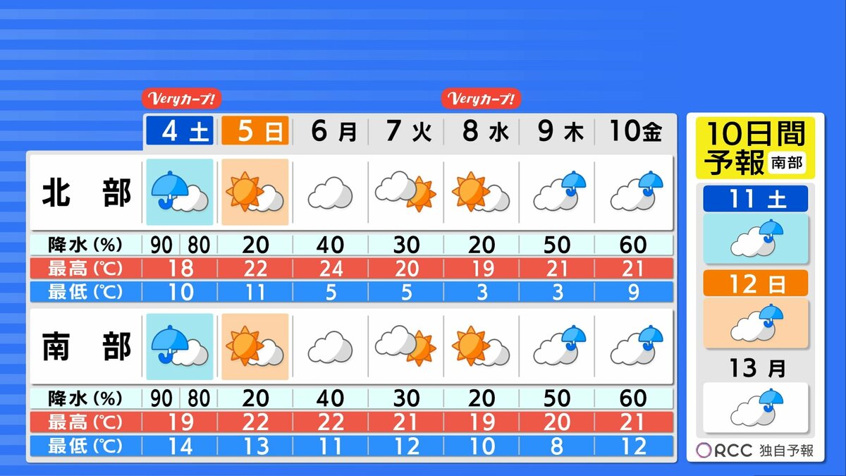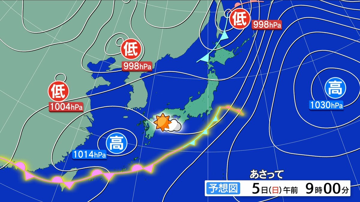 5日(日)天気を崩した前線離れて日差し復活