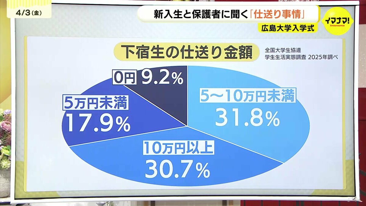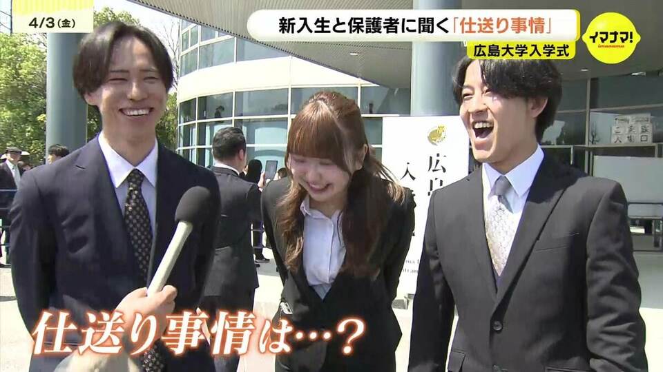 桜が映える晴天の下、広島大学の入学式が行われました。参加した学生は3200人、保護者は2600人と、家族揃って門出を祝う姿が多く見られました。大学生活でやりたいことと、気になる「仕送り事情」も聞いてきました。