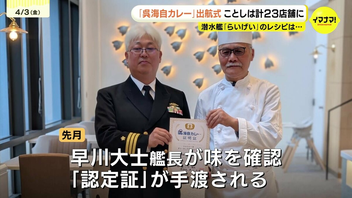 3月には、「らいげい」の早川大士艦長が実際に味を確認。無事に認定証が手渡されました。
