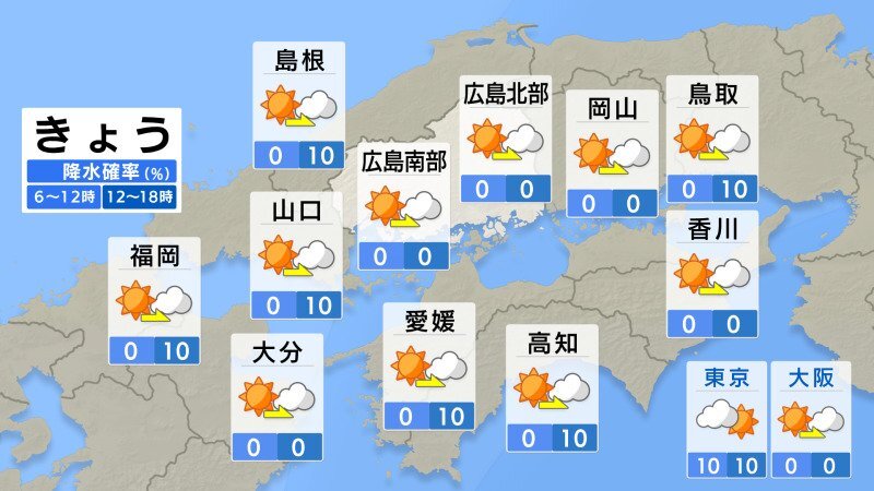 けさ4月6日(月)の広島県内は、各地で薄雲が広がっていて、北部では濃い霧の出ているところがあります。けさはきのうよりも冷え込みが強まりました。最低気温は、広島市中区10.7℃・庄原市8.7℃などでした。