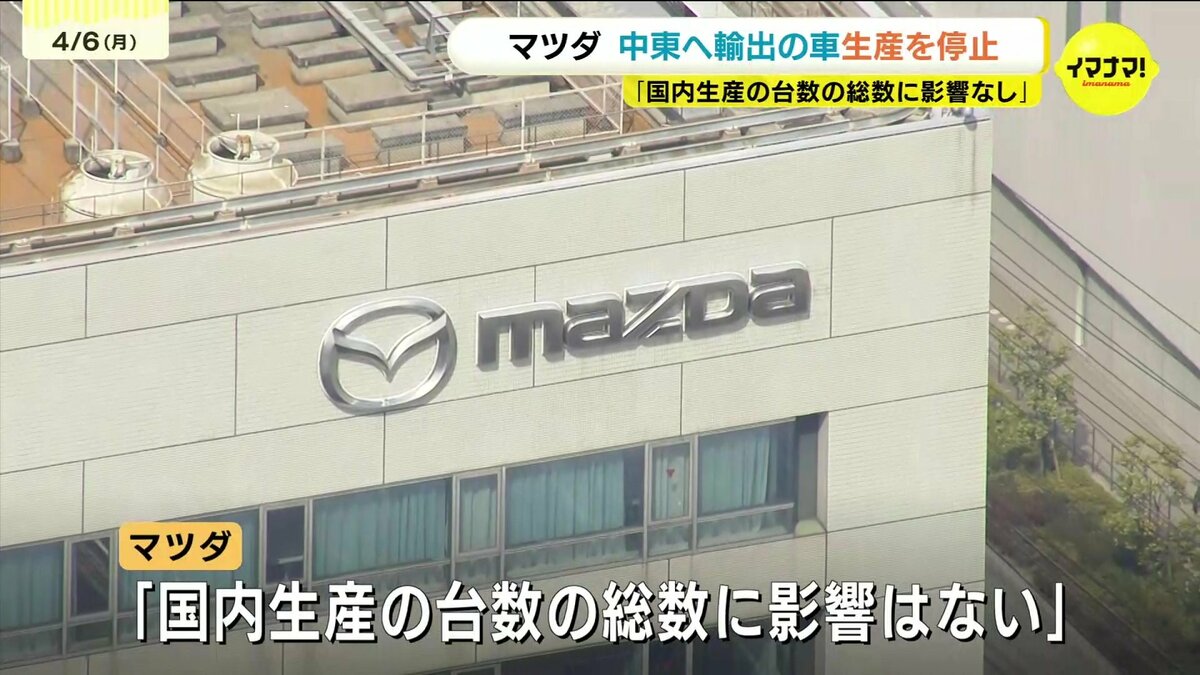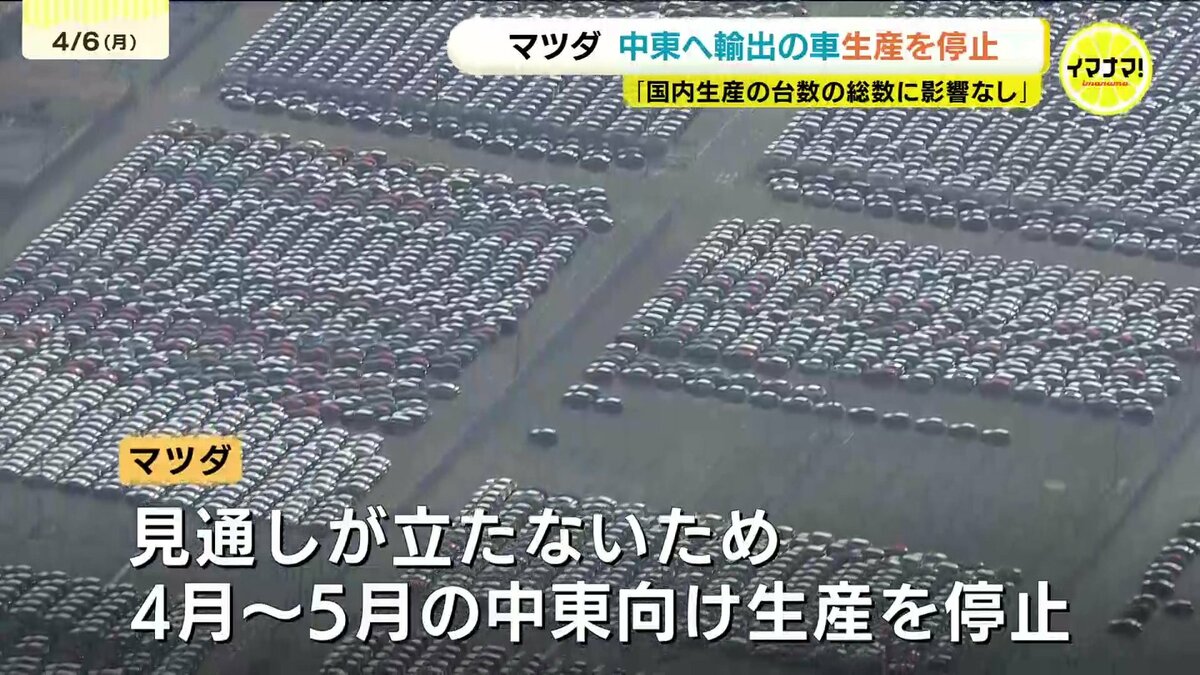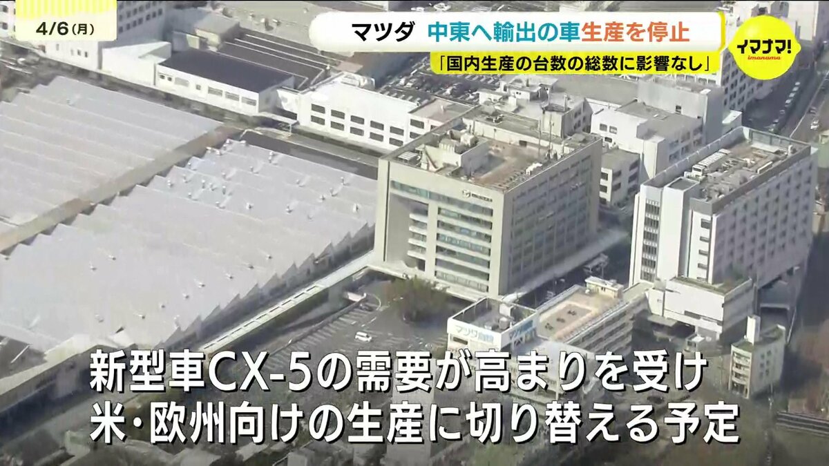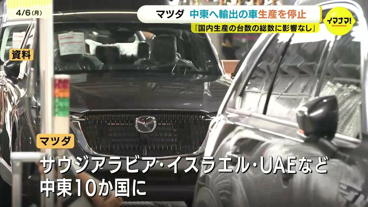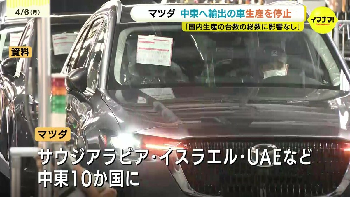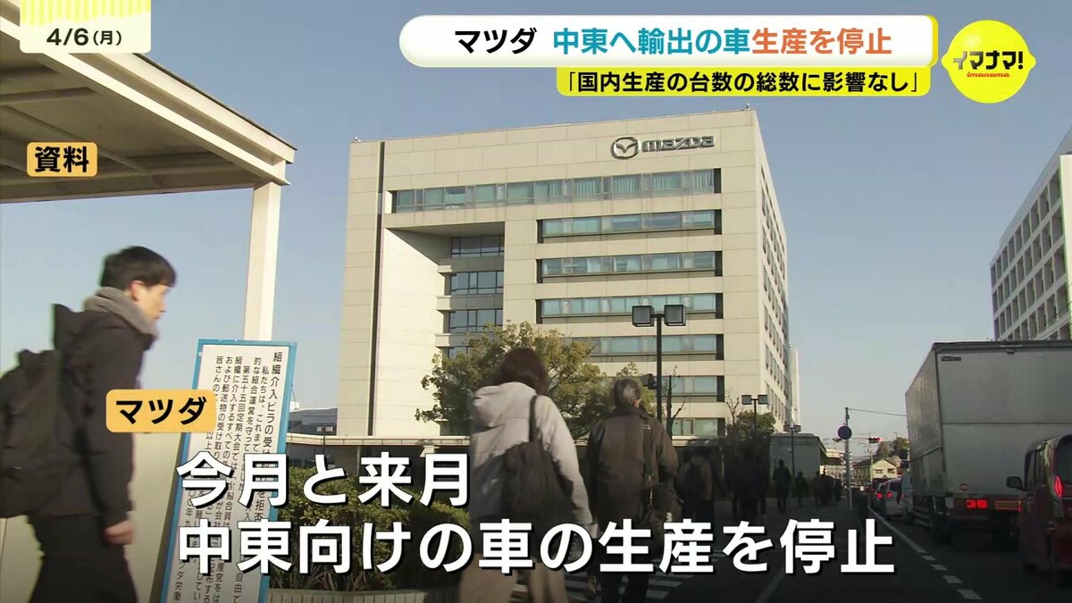 イラン情勢を巡る広島企業への影響についてです。マツダは、中東に向けて輸出している車の生産を一旦停止したことを明らかにしました。