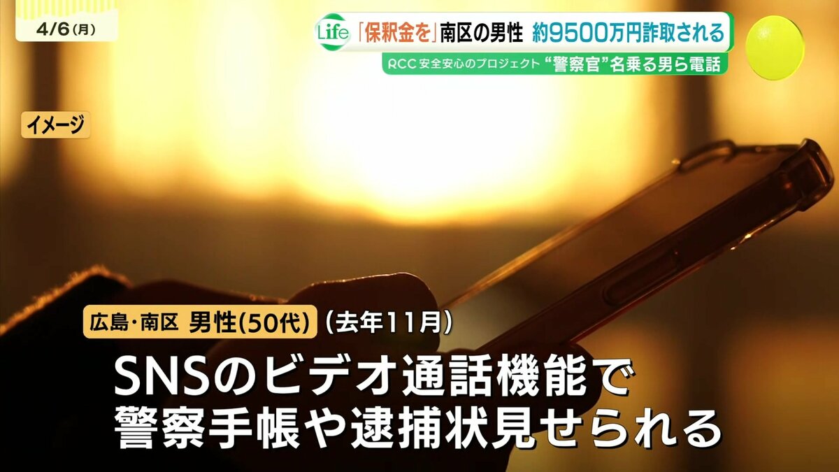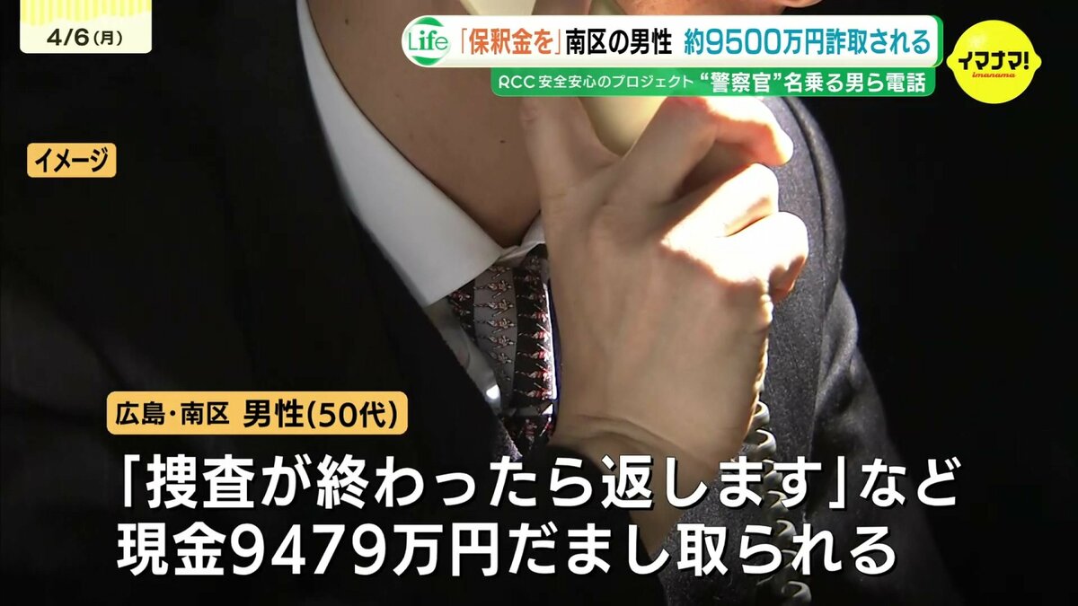 広島県警は6日、警察官や検察官を名乗る男などから「保釈金を入金して」「捜査が終わったら返します」などと言われ、現金およそ9500万円を騙し取られる特殊詐欺事件が発生したと発表しました。