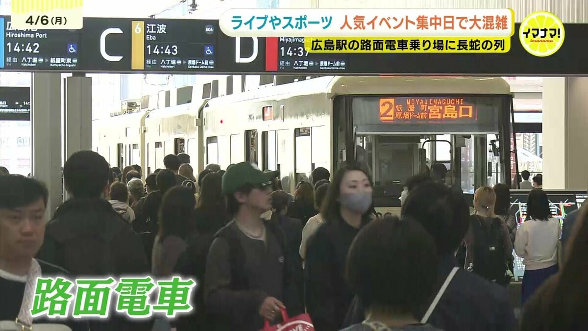 5日午後2時ごろの広島駅です。路面電車の乗り場は中心部へと向かう利用者で長蛇の列が出来ていました。