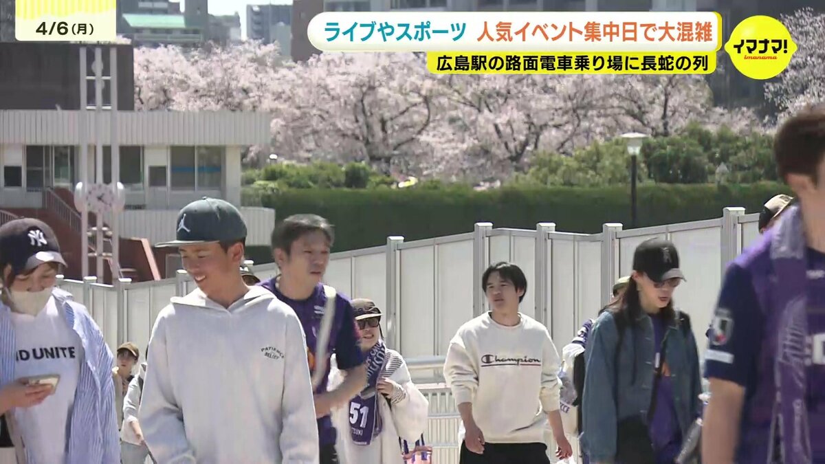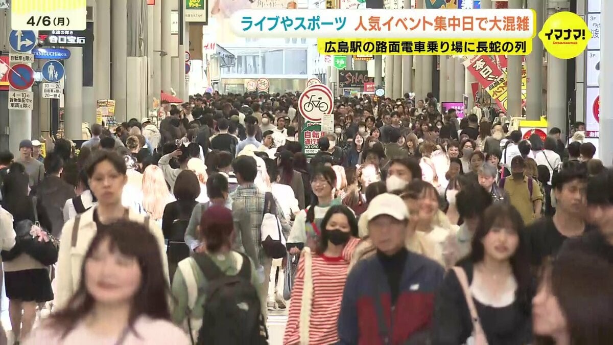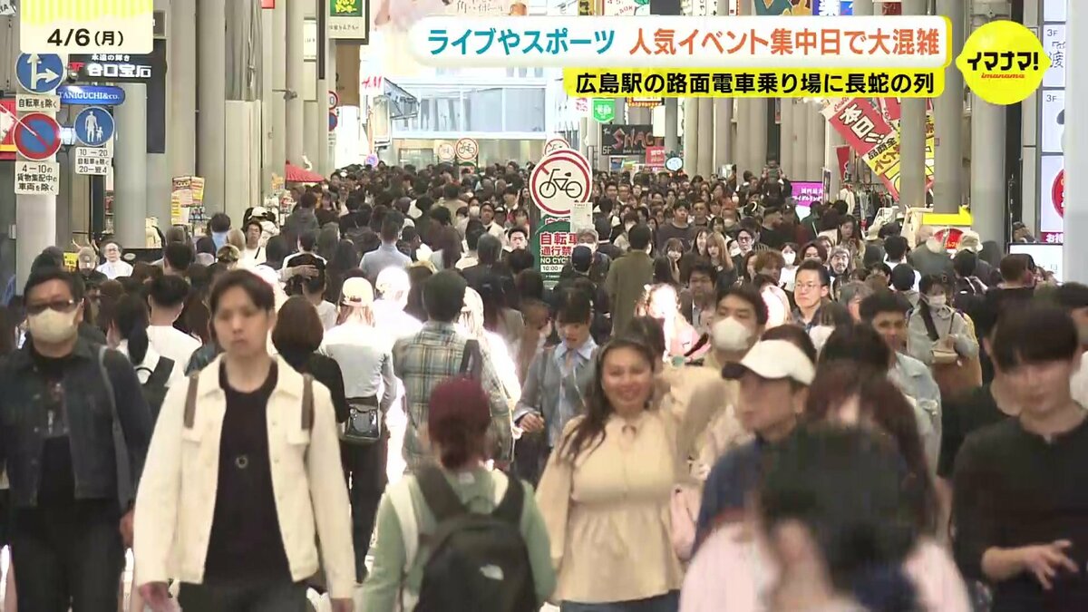 こちらは、5日の広島市内の様子です。県内外から多くの人が訪れ、大混雑となりました。音楽ライブにスポーツ。人気イベントが集中した1日を取材しました。