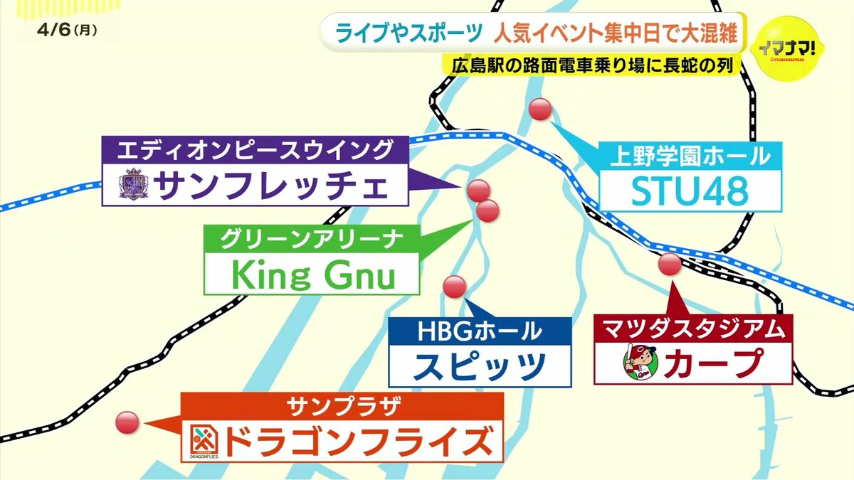 交通機関の利用者の変化など具体的な影響は分かっていません。しかし音楽イベントの「広島飛ばし」も懸念される中、5日は広島市の集客力を感じさせる1日となりました。