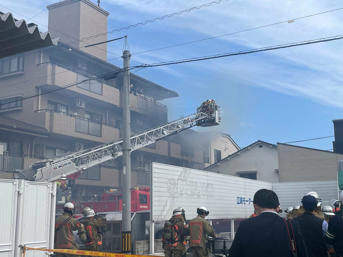 消防によりますと、7日午前8時半ごろ、広島市中区西川口町の集合住宅で「3階から煙が出ている」と119番通報がありました。