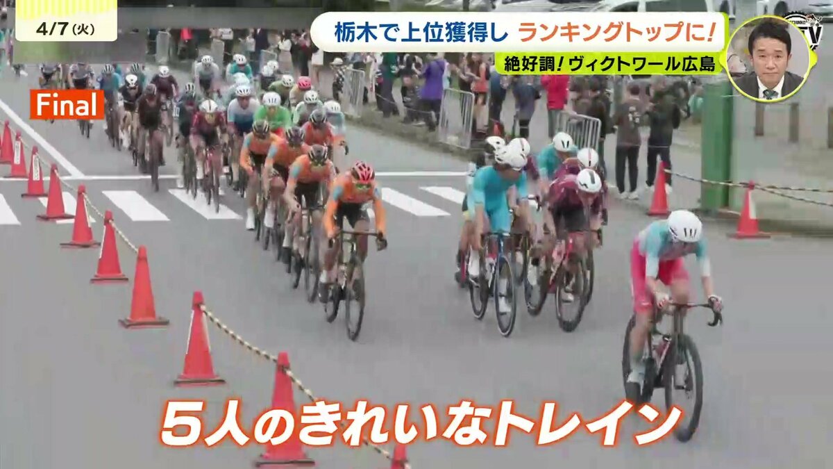 日曜日には市街地コース・60キロを走る宇都宮清原クリテリウムが開催されました。高速のスピードレースとなる中、最終回、ヴィクトワールはまたまた前に固まり、理想的なトレインを組みます。