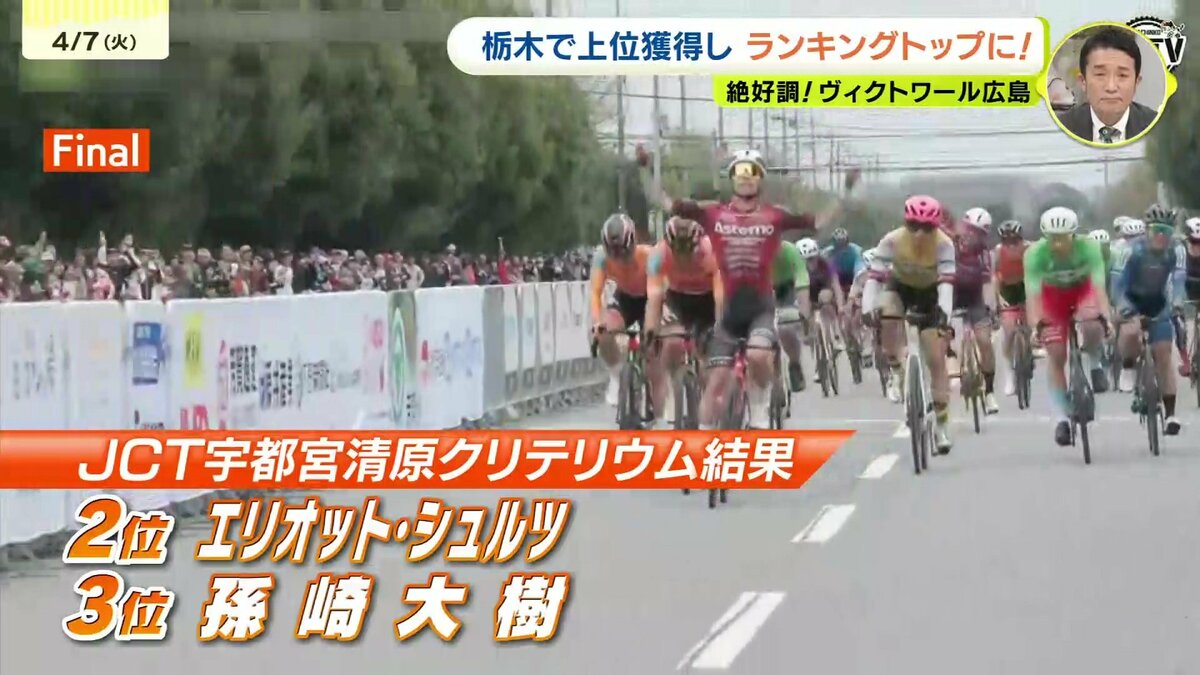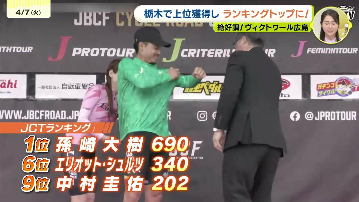 この結果、孫崎がクリテリウムツアーでもランキングトップとなり、ダブルでリーダージャージを着る快挙を達成しました。