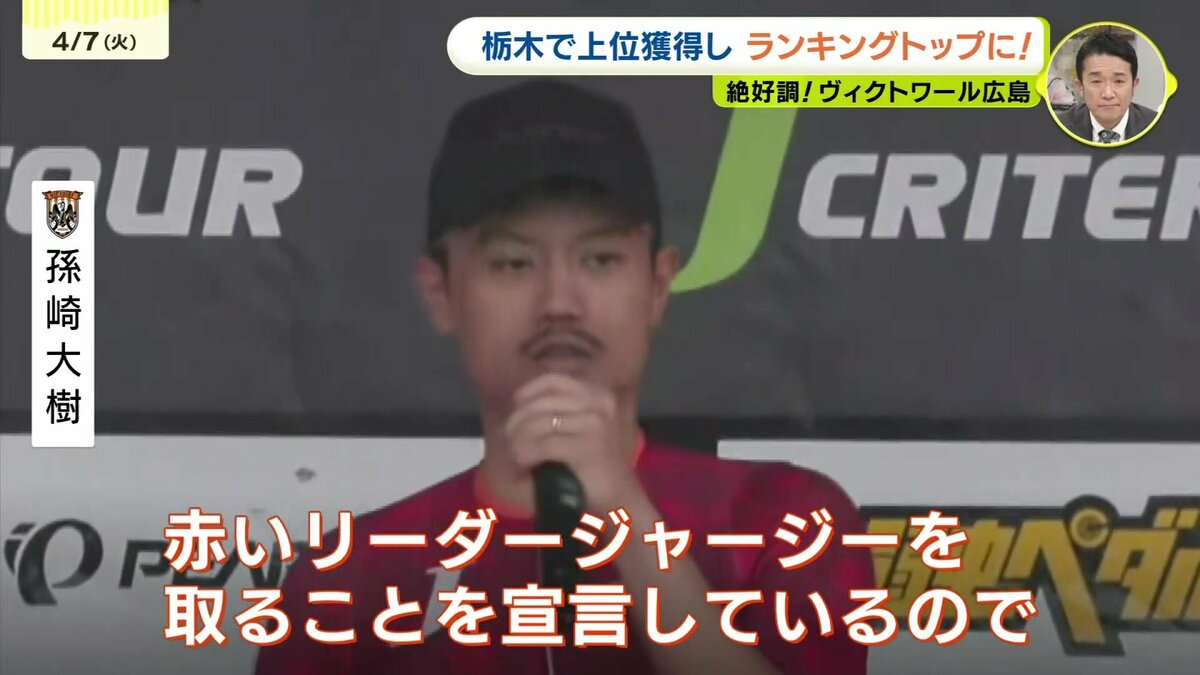 「今シーズンの僕の目標としてもクリテリウムとこちらの赤いリーダージャージを取ることを宣言しているのでここチームメイトから奪ってこのまま最後までキープしていきたい」