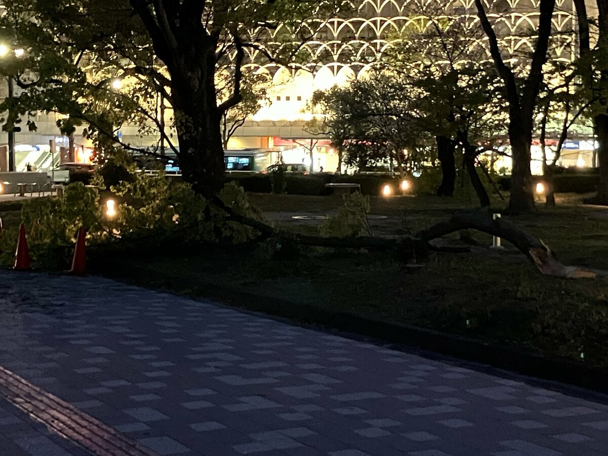 強風が原因とみられます。この倒木によるけが人や施設への被害はありませんでした。