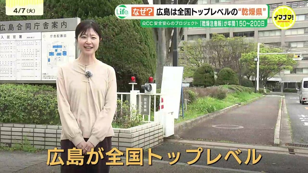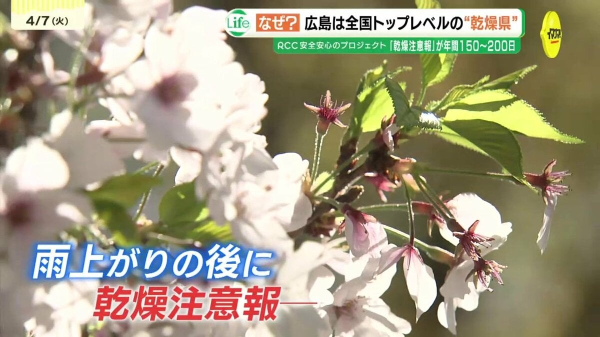 4日から5日にかけては、活発な雨雲が県内を通過し、今年1番の雨量となったところもありました。雨の翌日から3日連続で、県南部には乾燥注意報が発表されています。冬から春にかけては、全国的に乾燥する季節ですが、実は、広島は乾燥具合が全国トップレベルなのです。