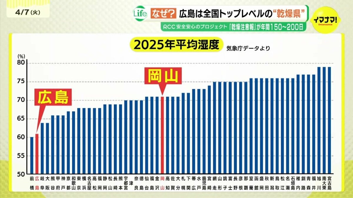 「広島市は、あの周辺に緑があまりなく、街中に観測所がありますので、都市化の影響があって空気が乾いているということは考えられるかなと思います」