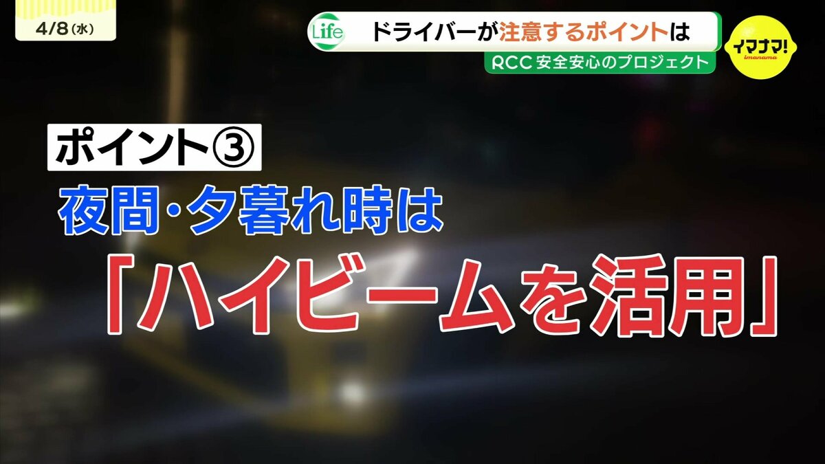 ポイント③ 夜間や夕暮れ時は「ハイビームを活用」