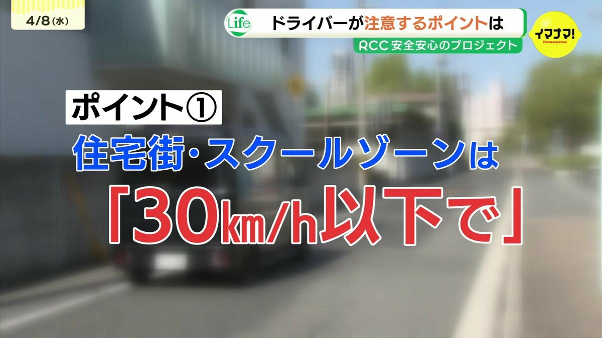 ポイント① 住宅街・スクールゾーンは「30km/h以下で」