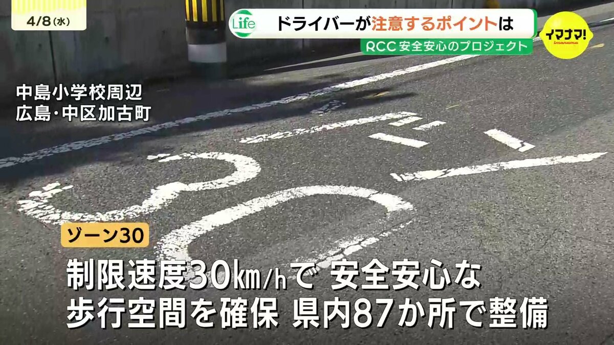 一部の学校近くなどには「ゾーン30」という、制限速度が30km/hのエリアがあります。(広島県内には87ヶ所整備)
