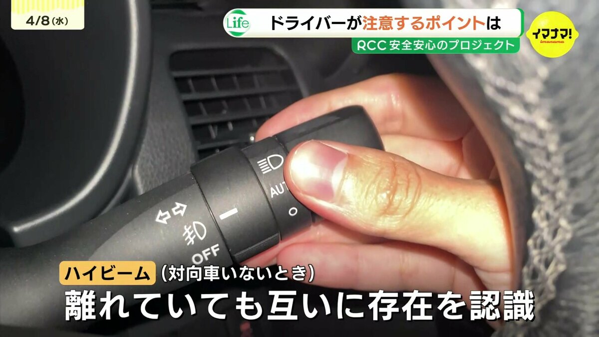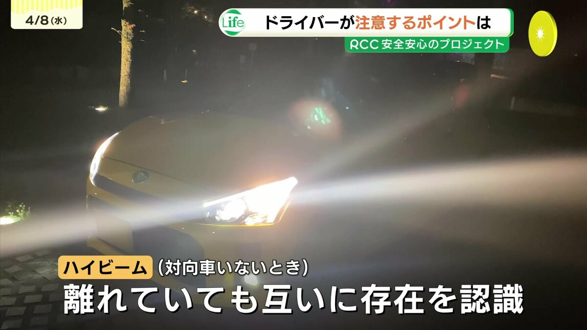 対向車がいないときはハイビームを活用すれば、車と子どもたちが離れていても、お互いその存在に気がつくことができます。