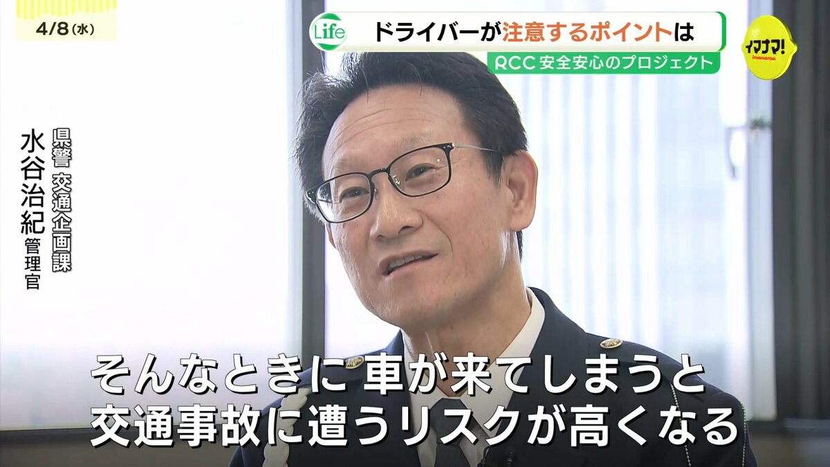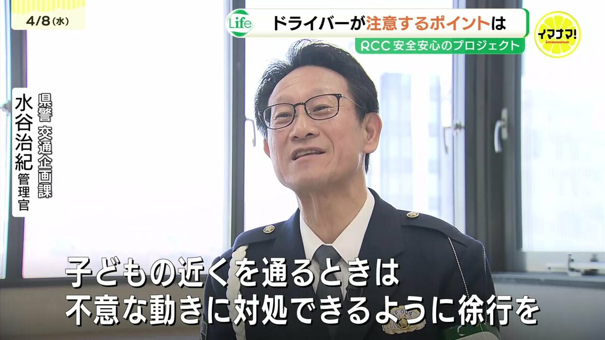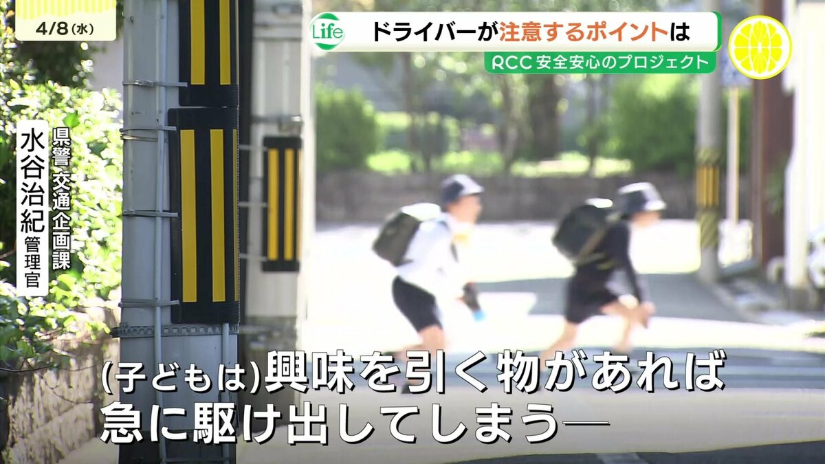 水谷管理官は「登下校時間帯や、子どもが複数で歩いている場合は、『飛び出してくるかもしれない』と思いながら、運転することが大切」と話します。