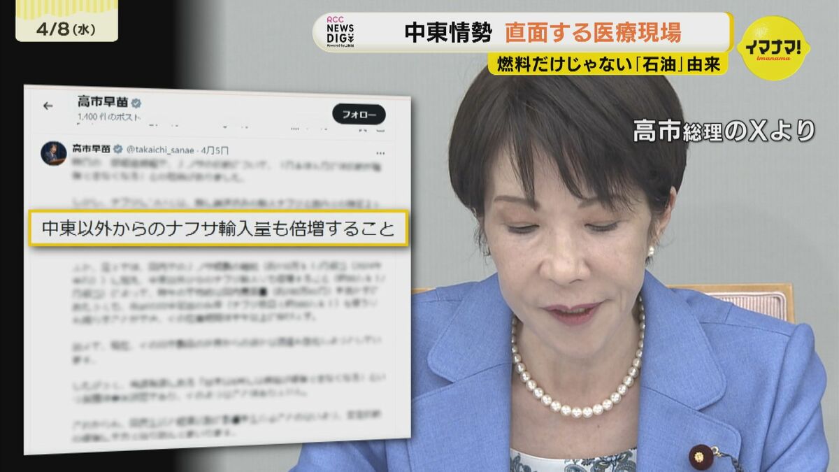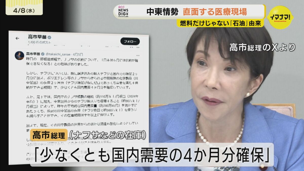 政府は、ナフサなどの在庫について「国内需要4か月分を確保している」と説明し、中東以外からの輸入を倍増させる方針を示しています。