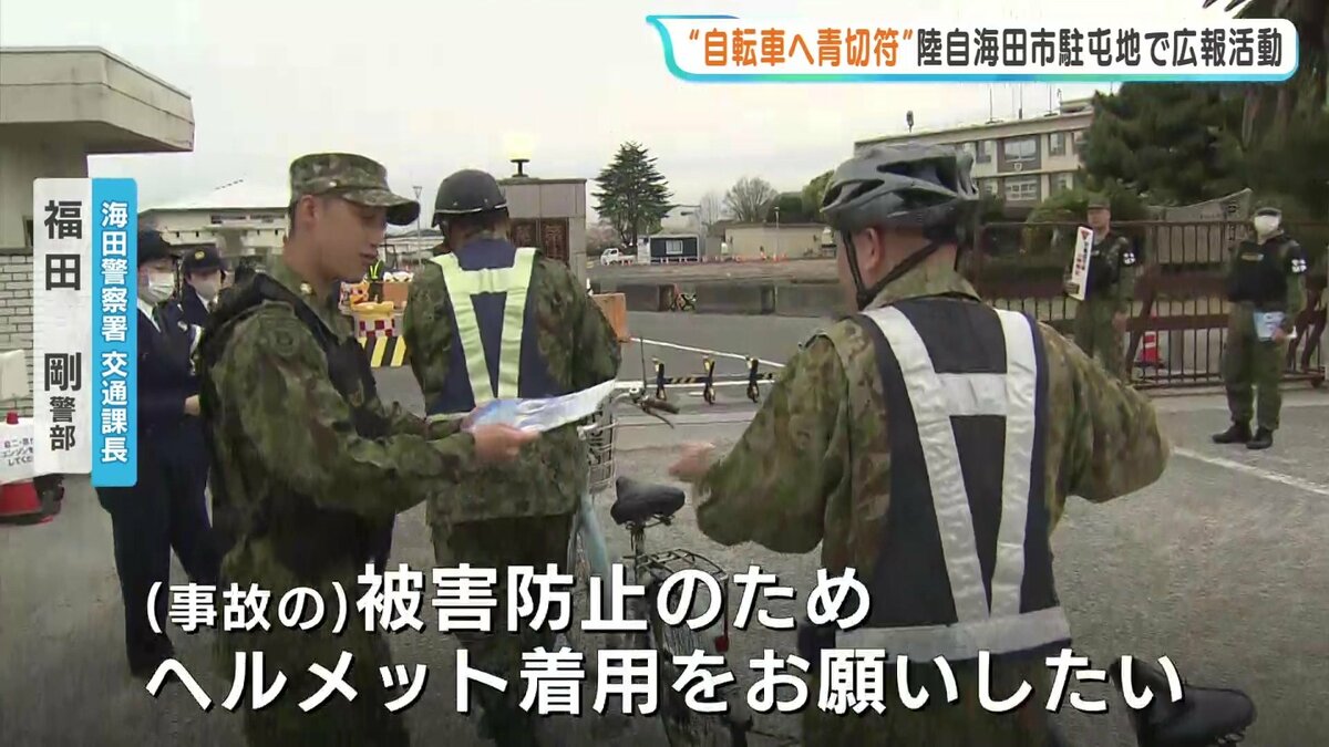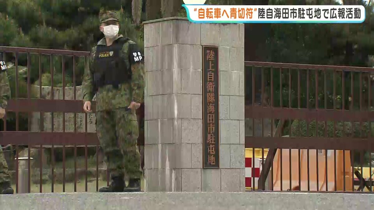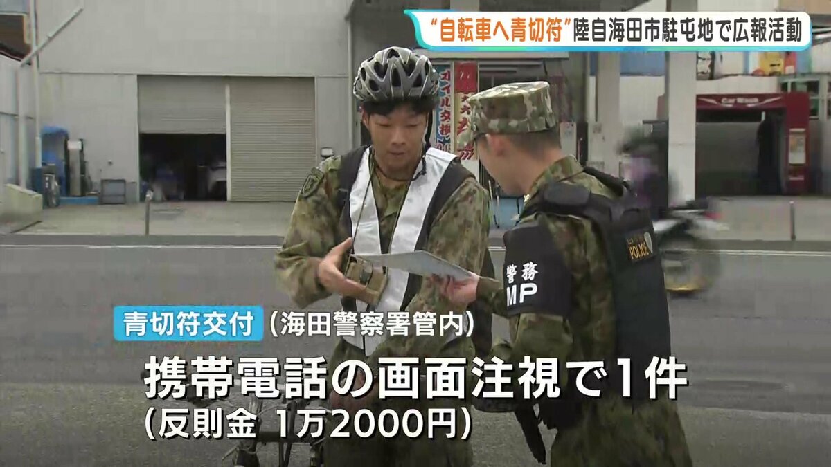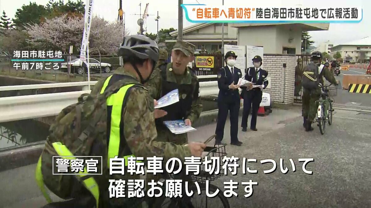 その自衛官たちに向け、今月から導入された自転車の青切符などに関するチラシを配りました。
