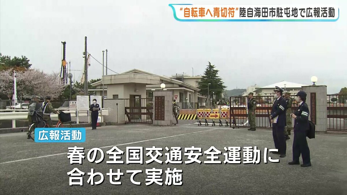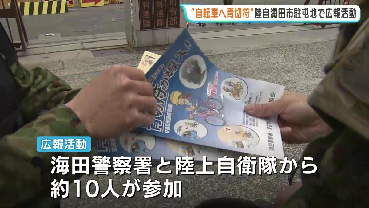 今月から始まった自転車への青切符制度について、警察と陸上自衛隊が合同で広報活動を行いました。