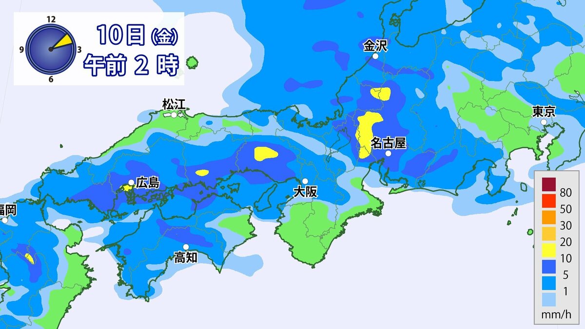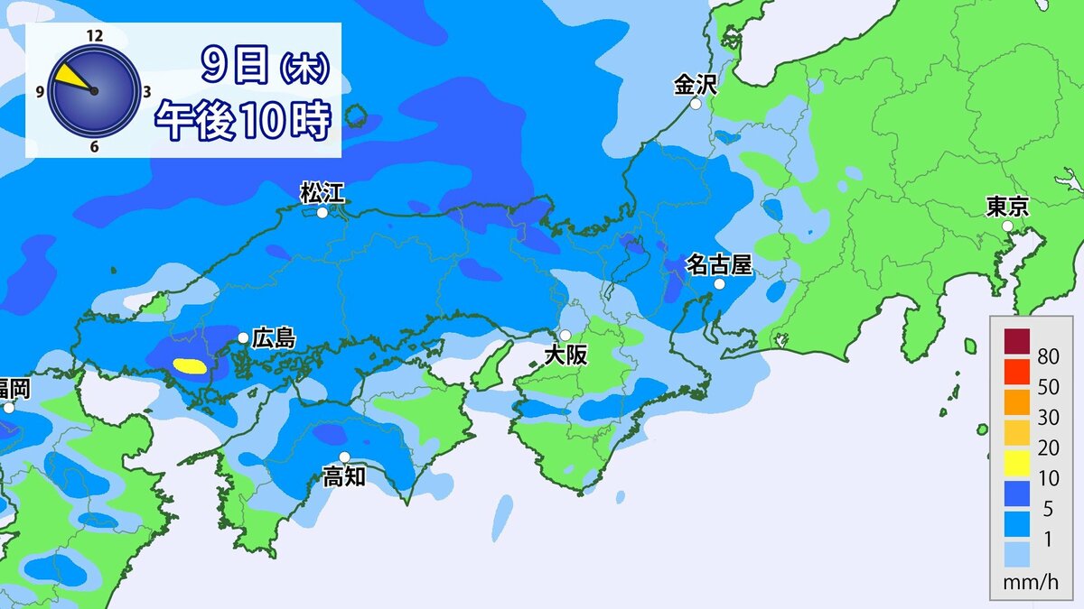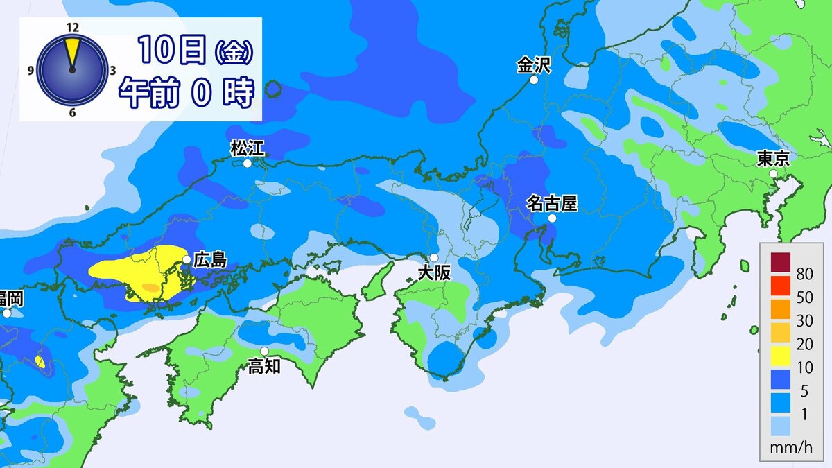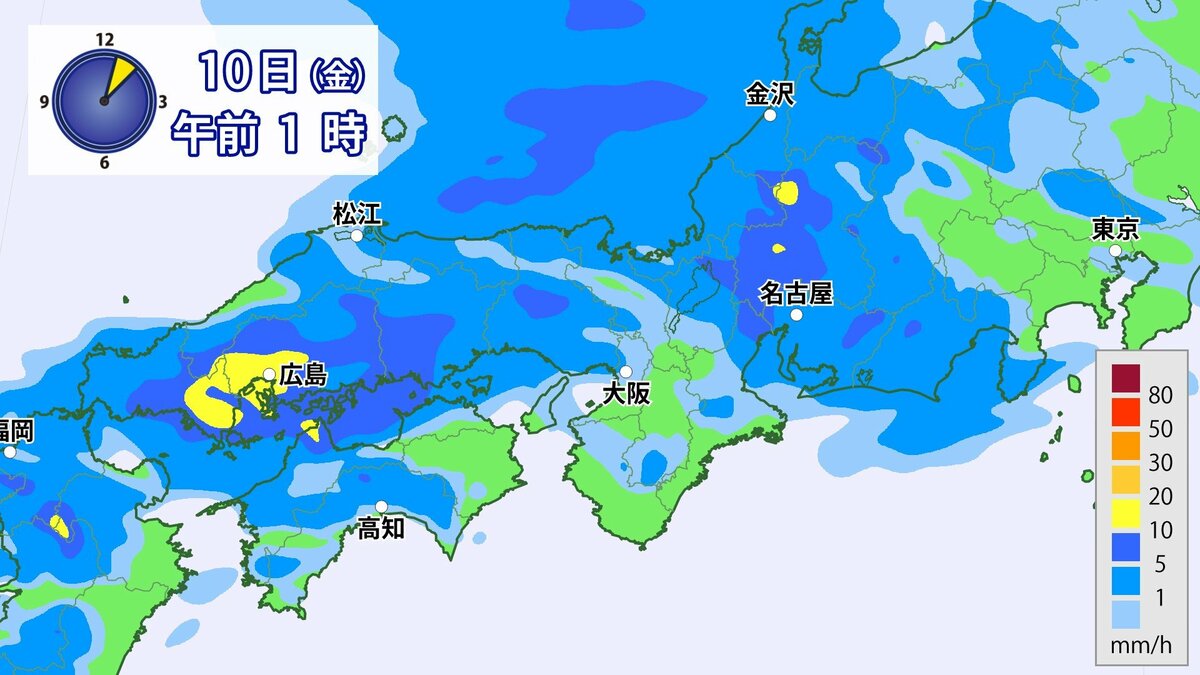 広島県では、10日未明から朝にかけて、局地的に雷を伴った激しい雨が降る見込みです。雨雲が現在の予想以上に発達した場合には、警報級の大雨となる可能性があります。