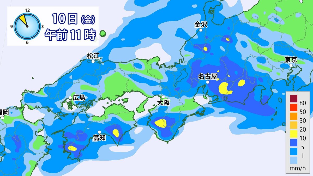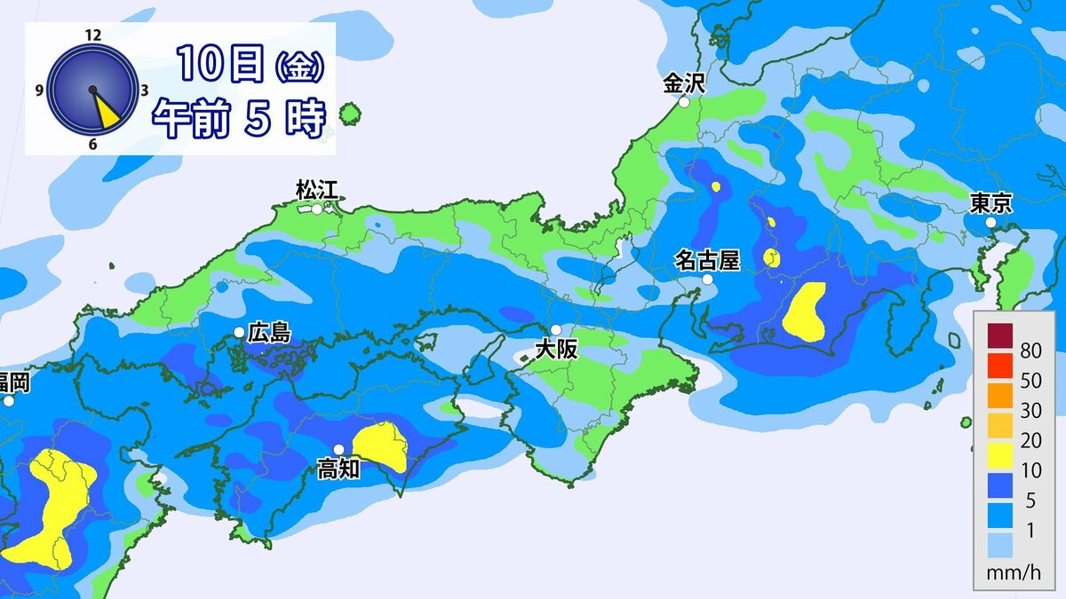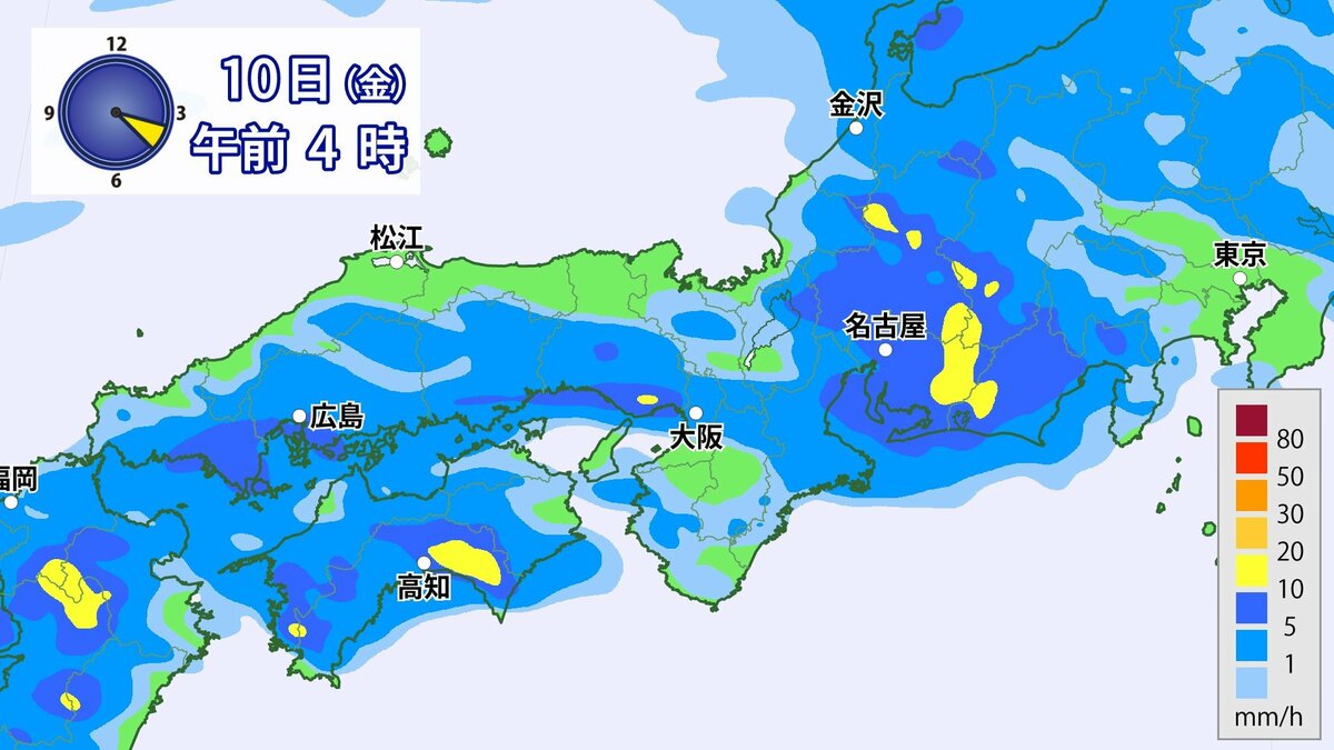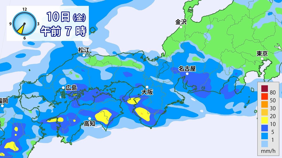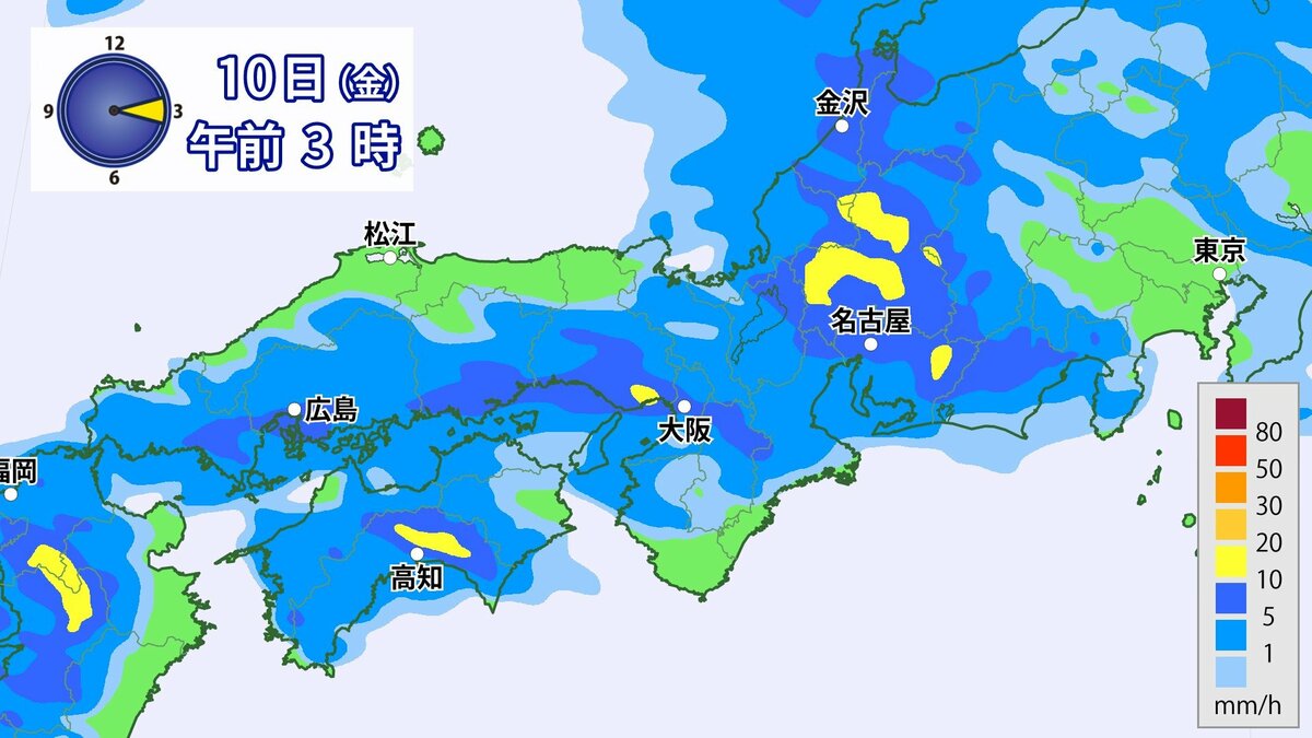 広島県では、10日未明から朝にかけて、局地的に雷を伴った激しい雨が降る見込みです。雨雲が現在の予想以上に発達した場合には、警報級の大雨となる可能性があります。