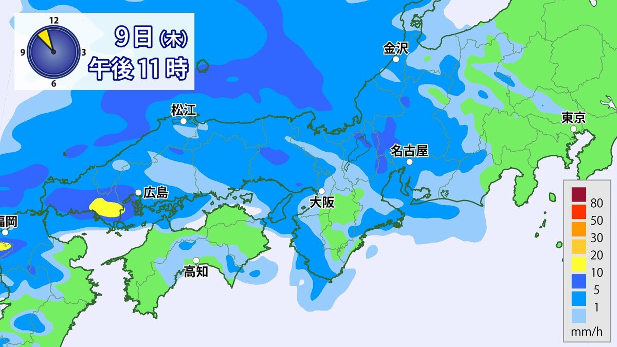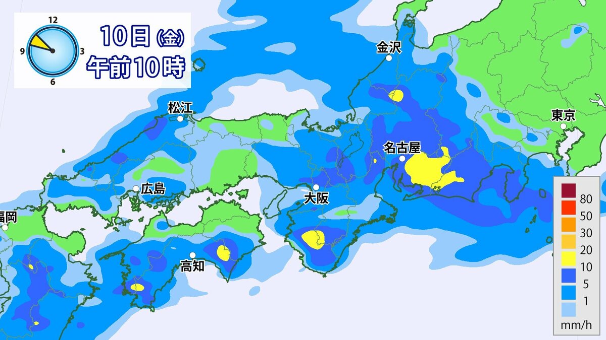 10日(金)にかけて低気圧が発達しながら黄海から日本海に進み、前線が本州付近を通過する見込みです。前線や低気圧に向かって暖かく湿った空気が流れ込むため、西日本では10日にかけて、東日本では10日は、大気の状態が非常に不安定となるでしょう。