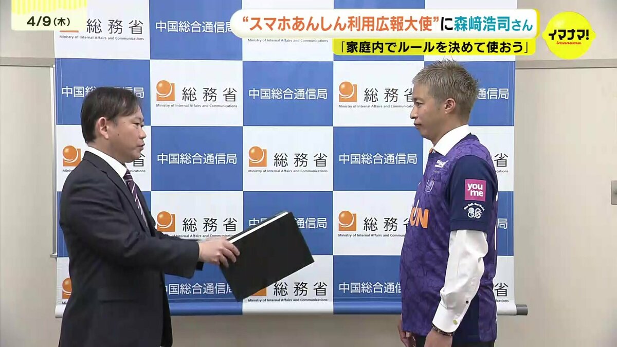 サンフレッチェ広島アンバサダーの森﨑浩司さんが9日、中国総合通信局の「スマホあんしん利用広報大使」に委嘱され、スマートフォンの安心安全な利用を呼びかけることになりました。