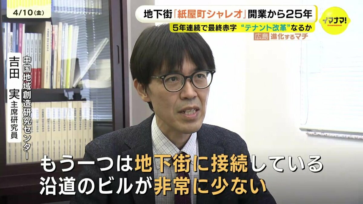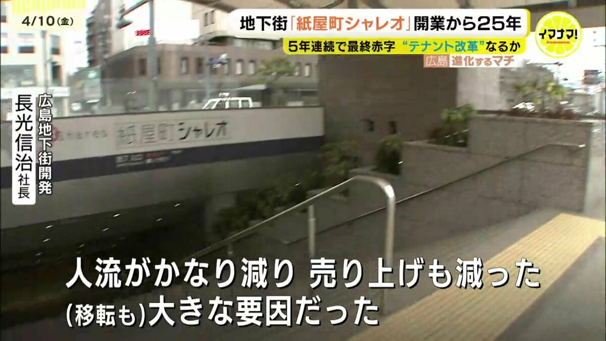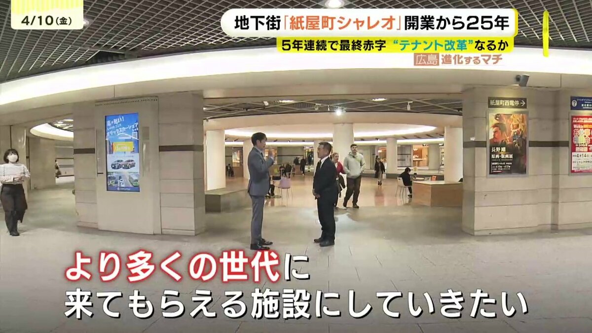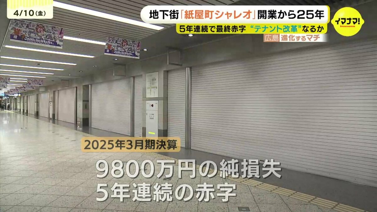 「紙屋町シャレオ」は4月11日で開業から25年となります。シャレオは広島都心の一等地の地下にありますが、5年連続の最終赤字に陥っています。現状と課題、今後の展望について取材しました。