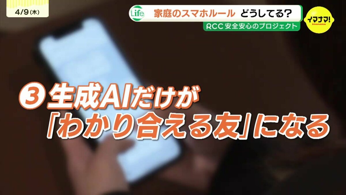 「4月5月っていうのは友達が少ないですよね。生成AIというのは、優しいというか、元気づける回答し、発言をしてくれて、なんか1番自分のことわかってくれるんじゃないかっていう風にね、思ってしまって、”生成AIのことが絶対”っていう風に思ってしまうのが、ちょっとリスクが大きいなと今思っています」