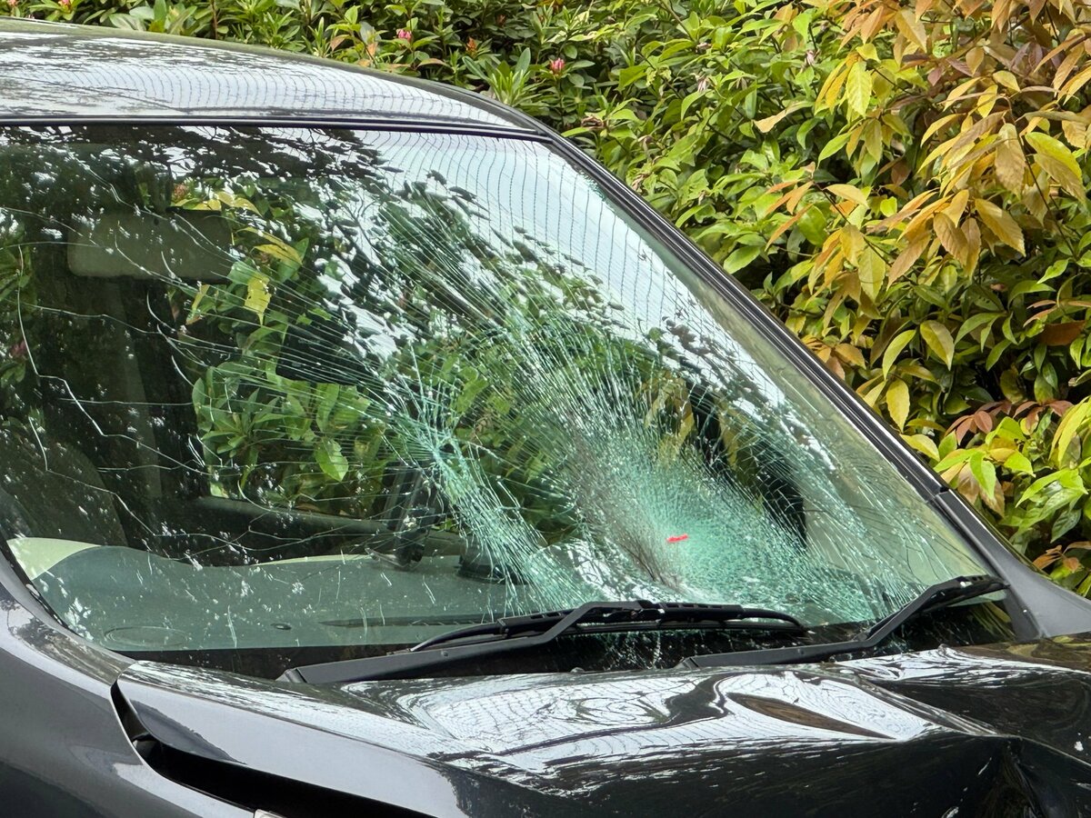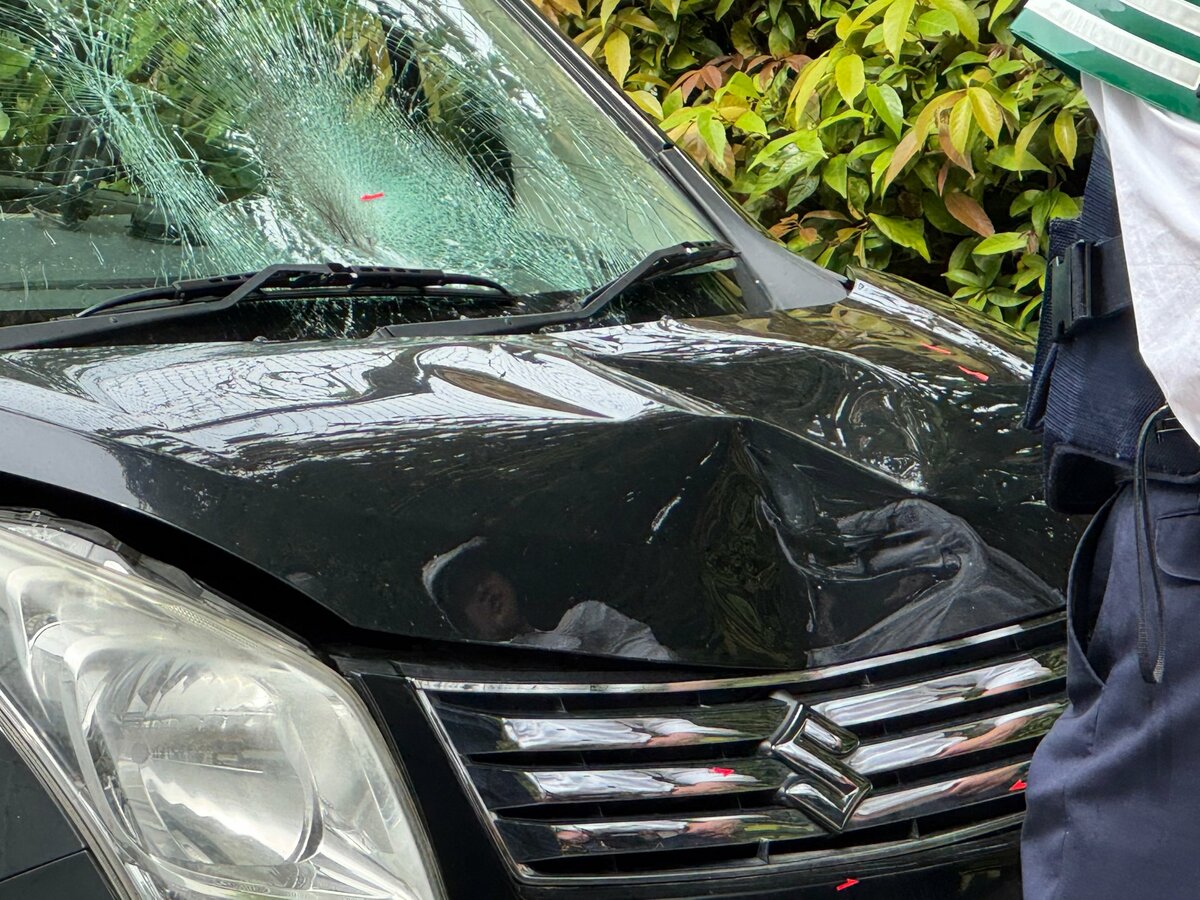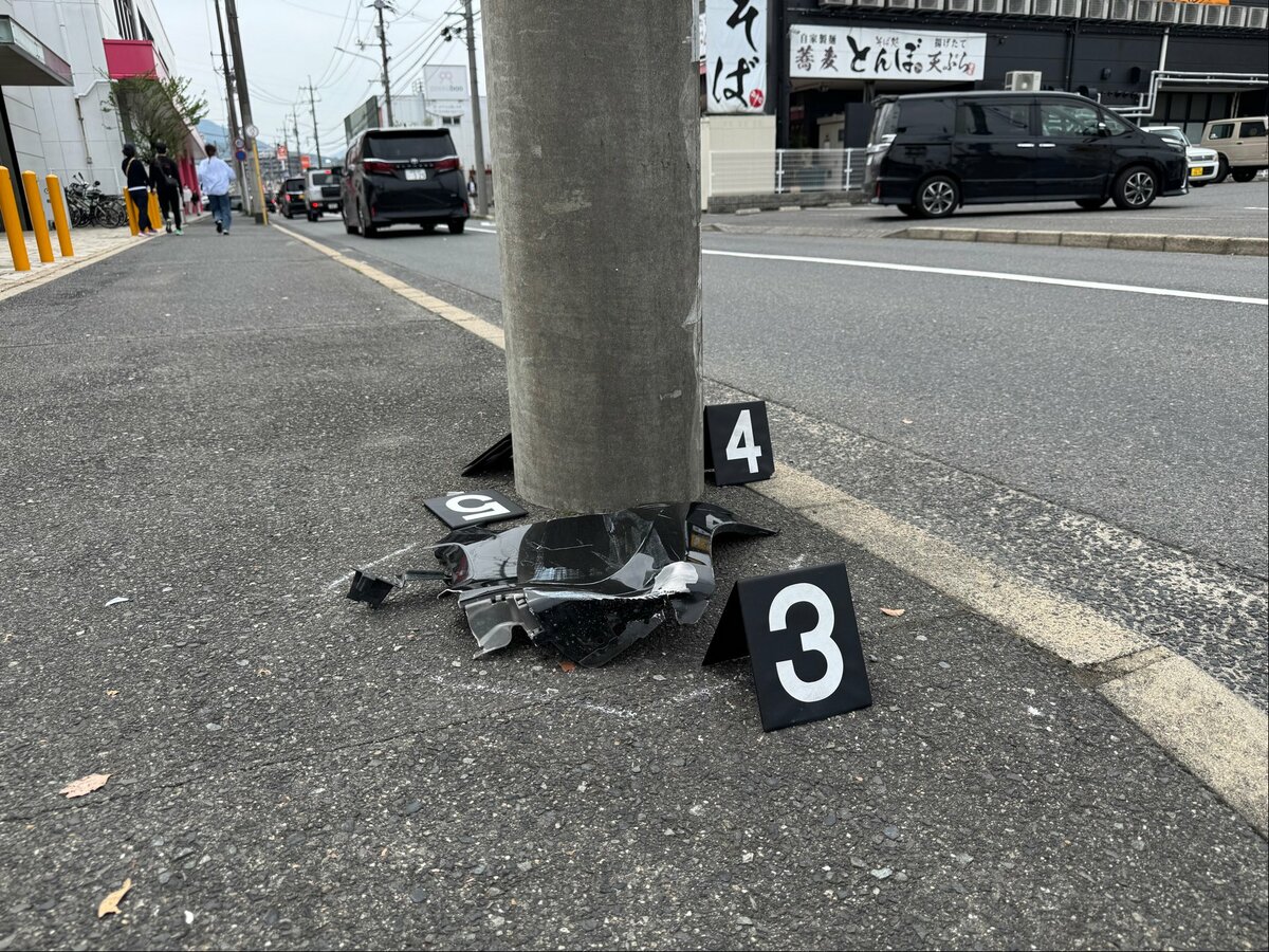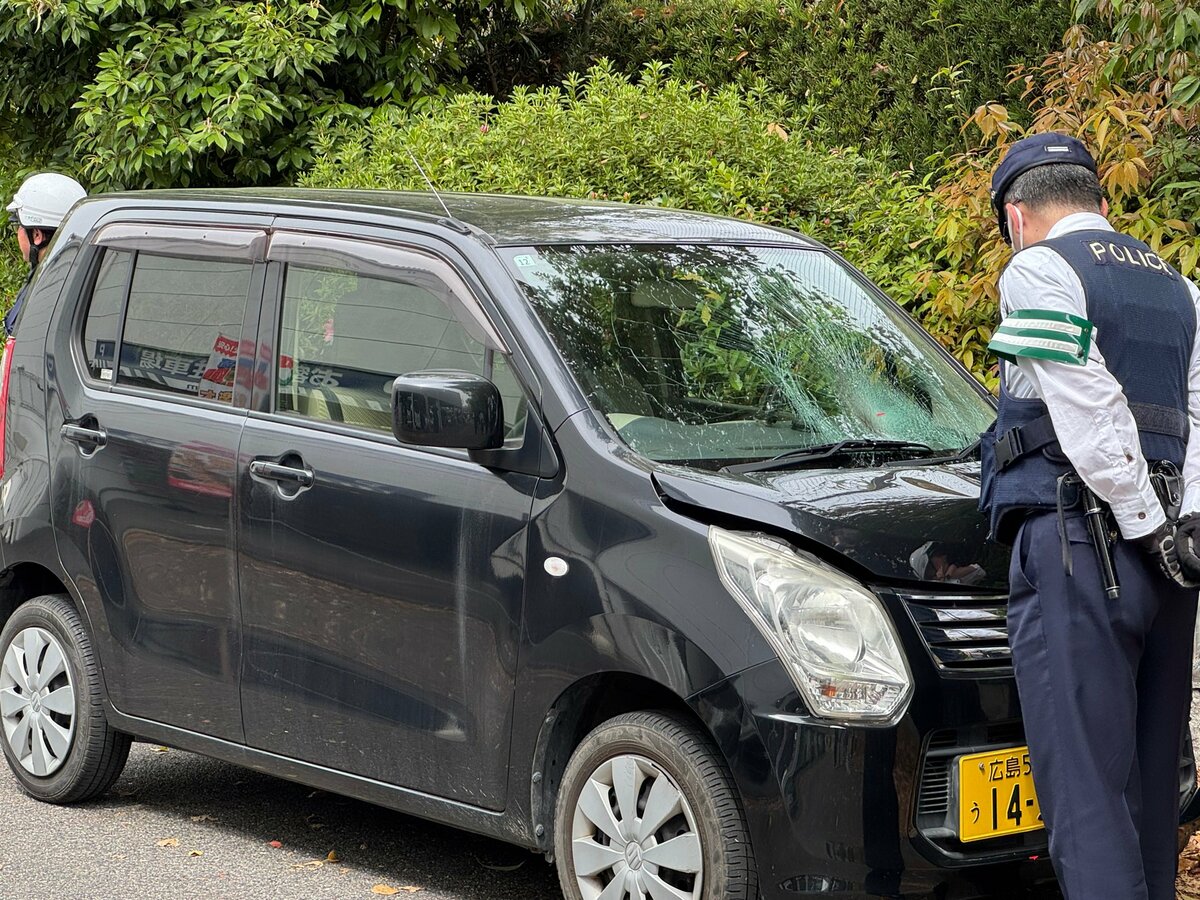 【画像を見る】フロントガラスが大破 事故を起こしたと見られる軽乗用車や事故現場