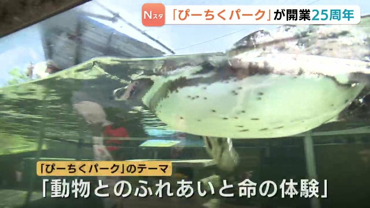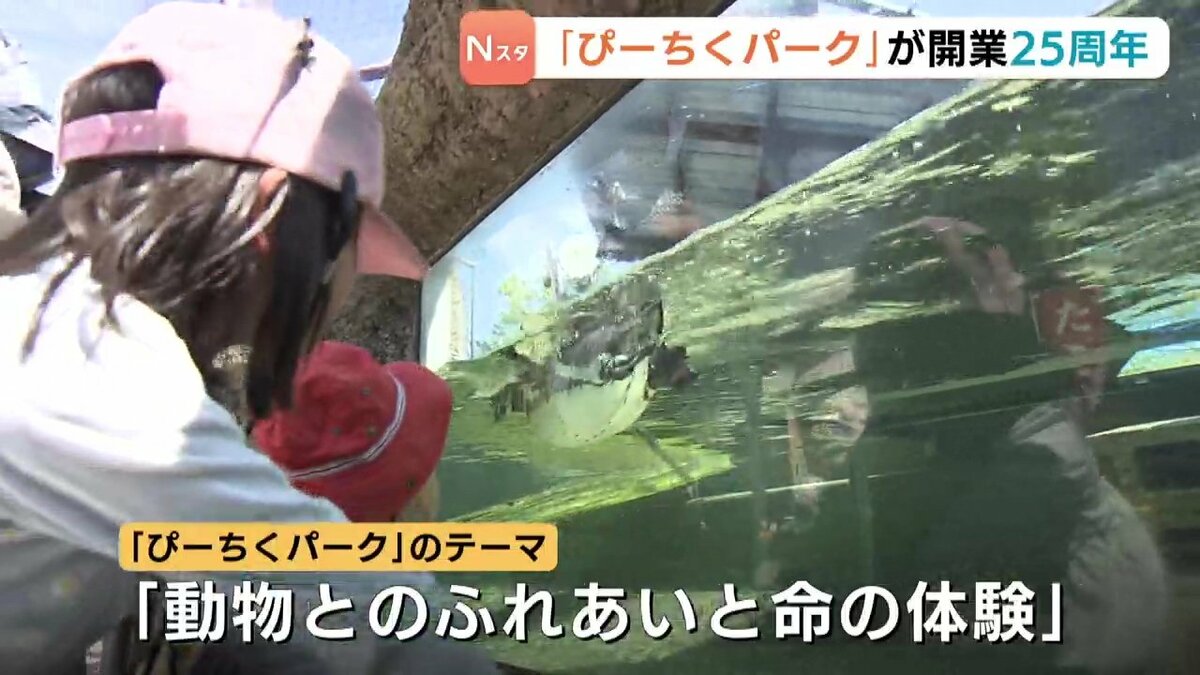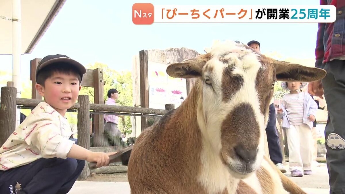 ぴーちくパークは、動物とのふれあいと命の体験をテーマに25年前、オープンしました。鳥類や哺乳類といった33種類の動物たちが子どもを出迎えます。