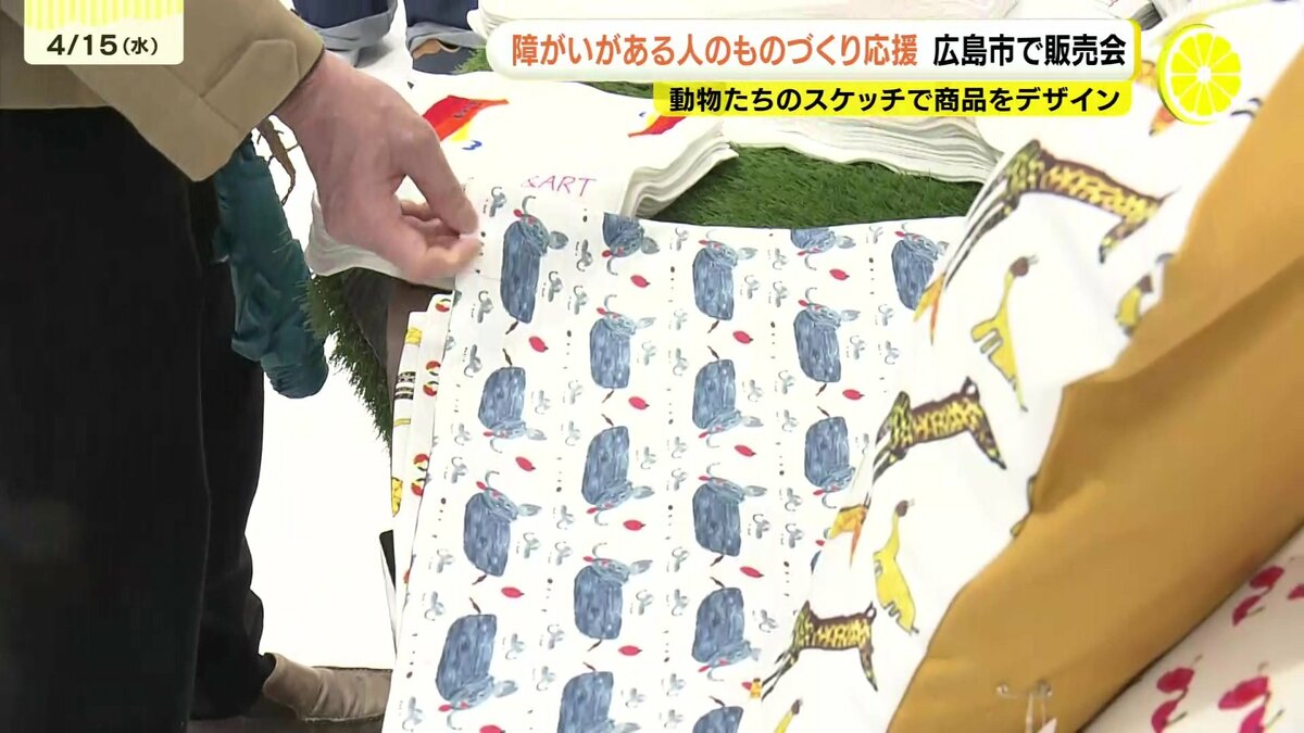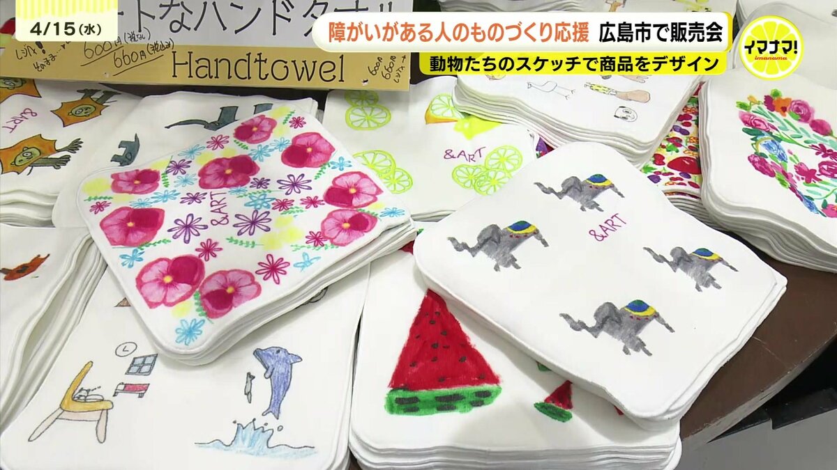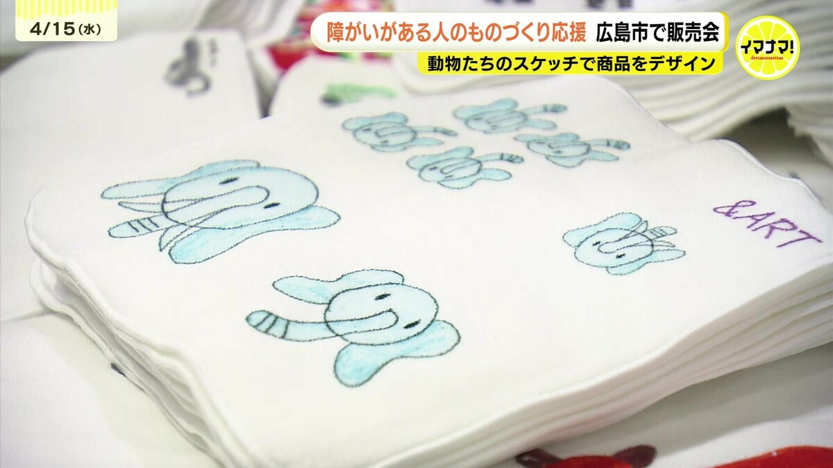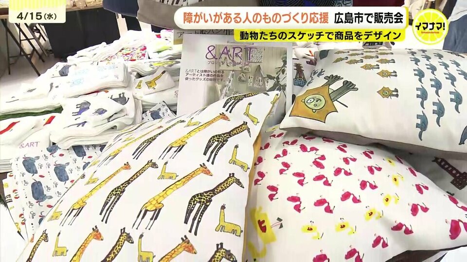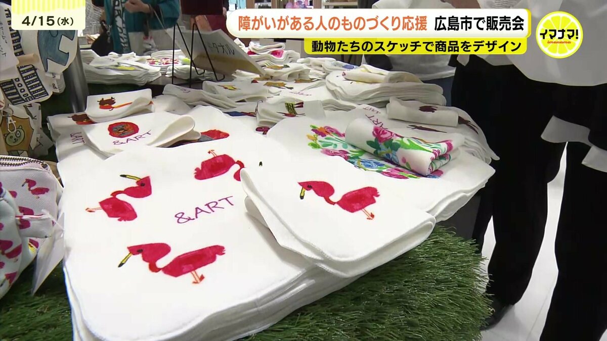 ひと際、注目を集めるのは動物の絵柄がデザインされたハンドタオルやバック。「&ART(アンドアート)」という障がいがあるアーティストたちの作品です。