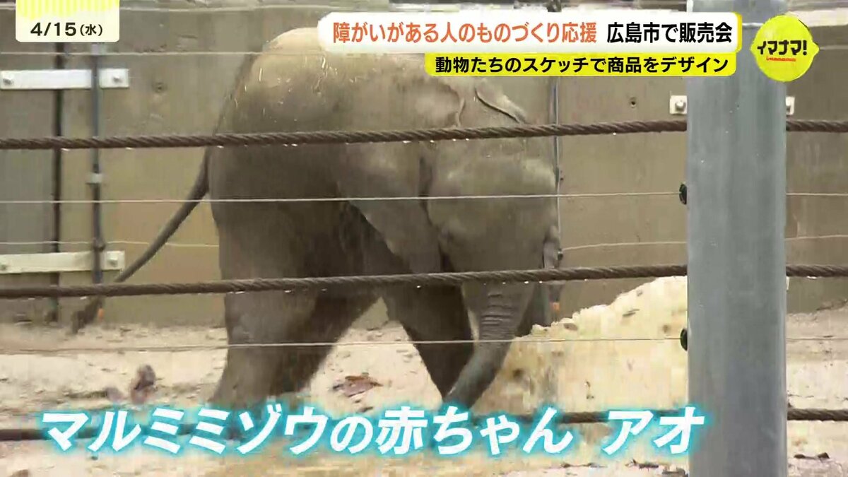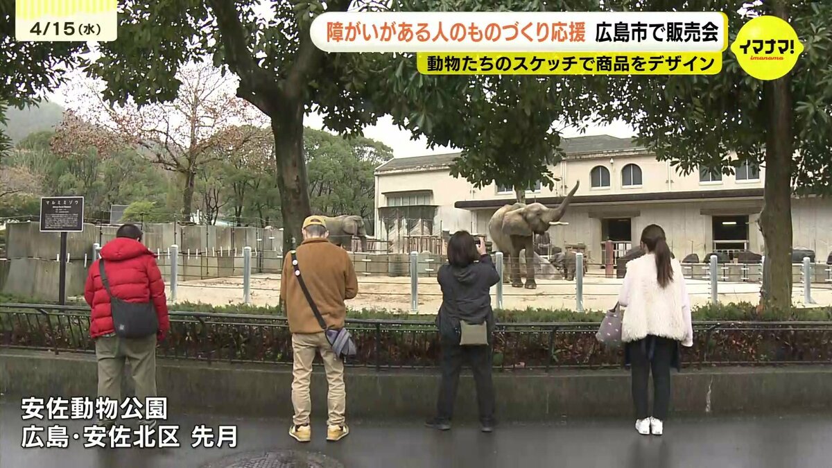 普段は福祉事業所で再生紙作りの作業などをしている利用者たち。マルミミゾウの赤ちゃんアオなど動物たちを実際にスケッチしました。