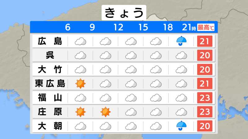 きのうは一日を通してよく晴れて、広島市中心部ではことし初めて25℃以上の「夏日」を観測しました(最高気温26.3℃)が、きょうは高気圧の中心が離れていき、南から湿った空気が流れ込んでいます。