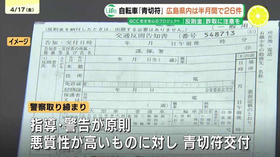 県警は「青切符が交付されても、その場で直接反則金を支払うことは一切ない」として、注意を呼びかけています。