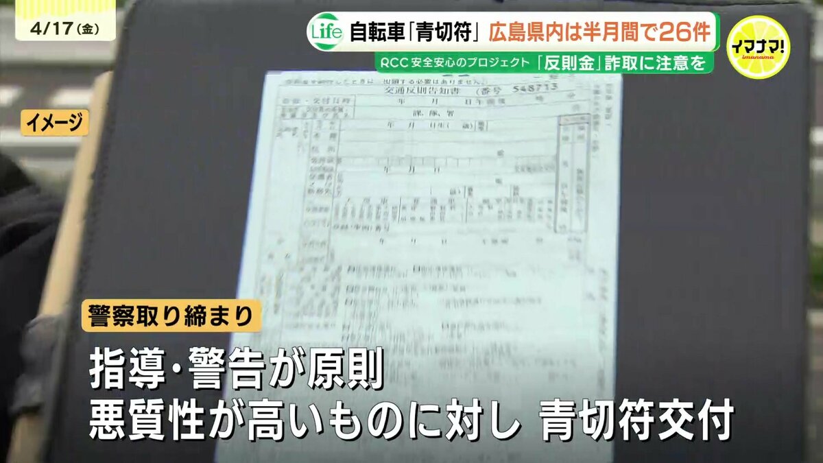 県警によりますと、制度が始まった今月1日からおとといまでの半月の間に、広島県内では26件の青切符が交付されました。