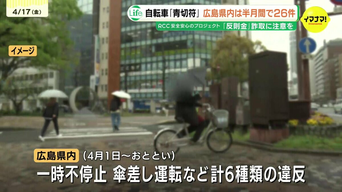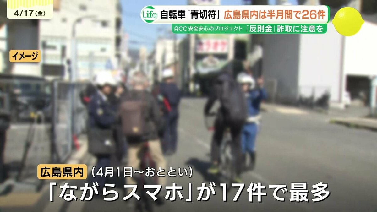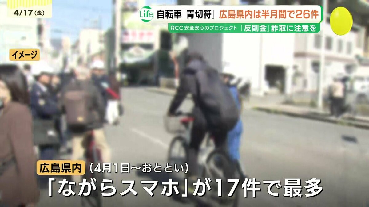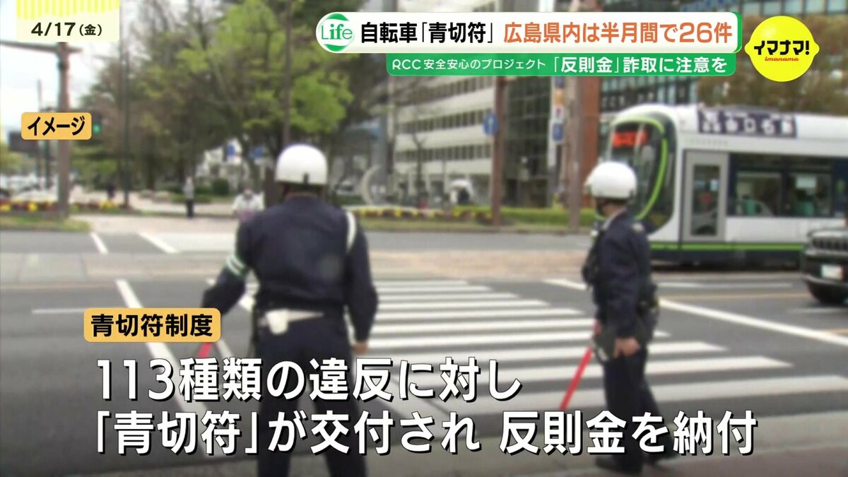 今月1日から始まった自転車の交通違反に対する「青切符」制度で、広島県内ではこの半月の間に26件の青切符が交付されたことが分りました。