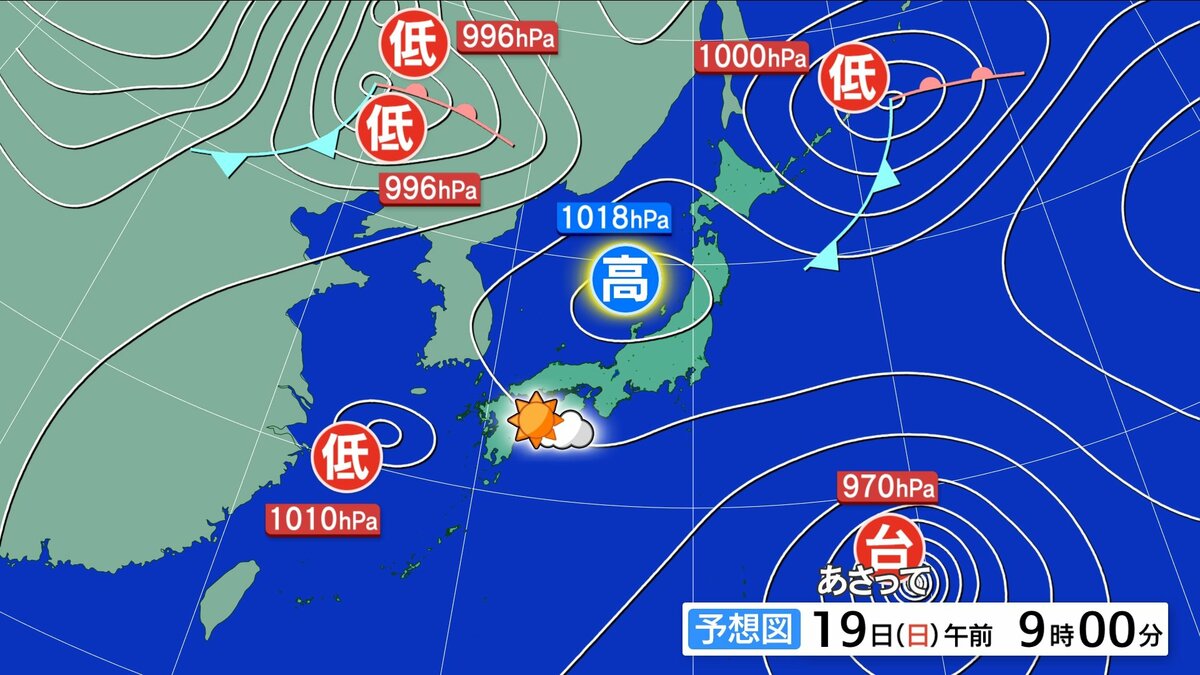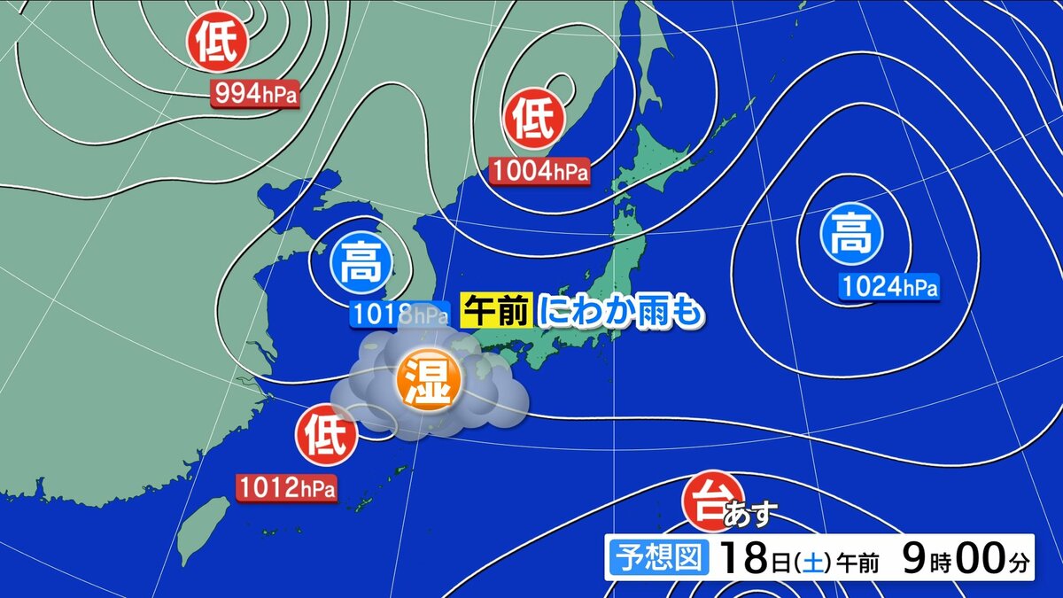 18・19日(土日)土曜は午前中心ににわか雨 日曜晴れて夏日続出か