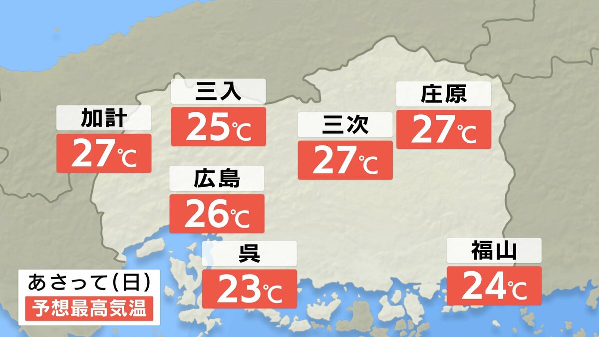 あさって日曜日は、高気圧に覆われよく晴れて気温が上昇するでしょう。夏日の地点が続出する予想です。お出かけの予定がある方は、暑さ対策・紫外線対策が必要になりそうです。