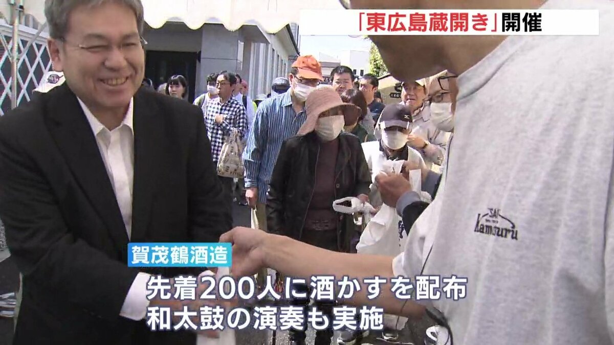 老舗蔵のひとつの賀茂鶴酒造では、和太鼓の演奏とともに、先着200人に酒粕が配られました。