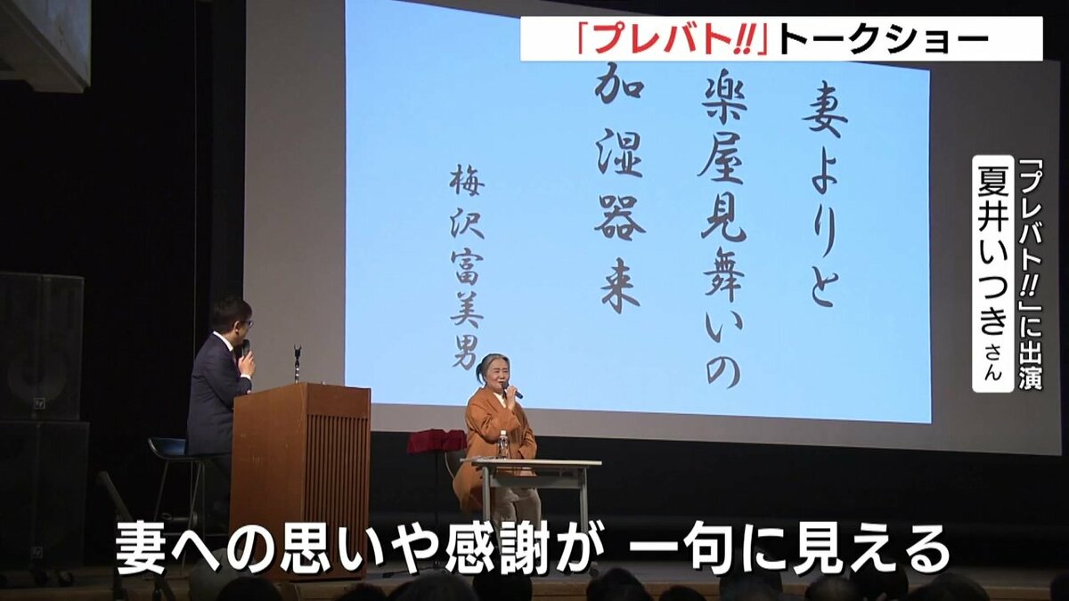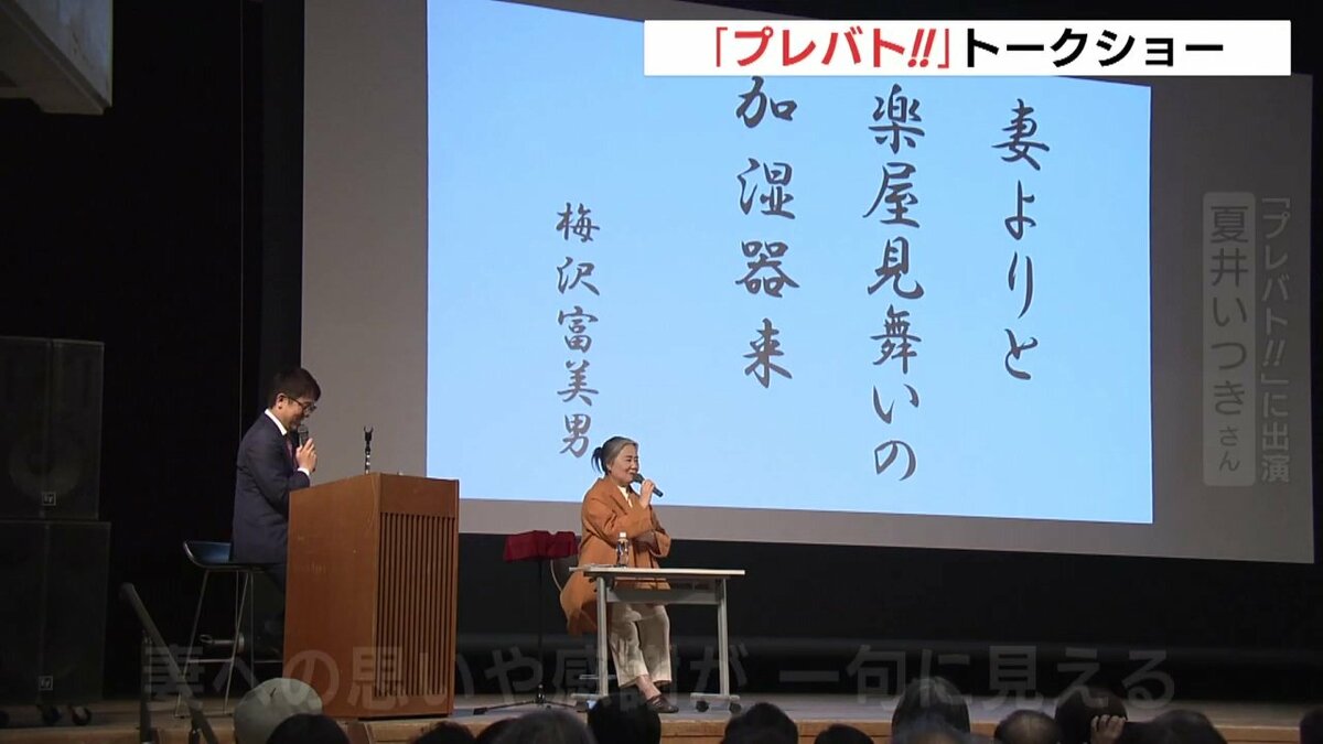 毎週木曜日に放送中の「プレバト!!」で、毒舌な俳句の添削が人気を集めている夏井いつきさんです。トークショーでは、番組で共演する梅沢富美男さんなど印象に残った句が紹介されました。