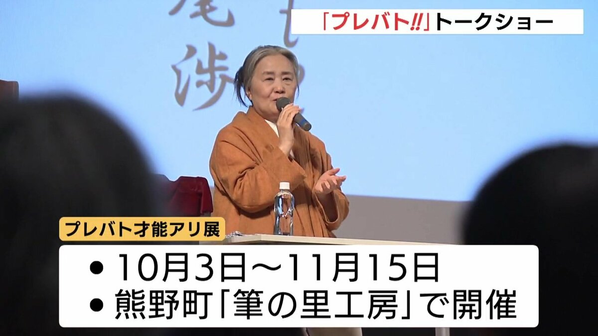 RCCで放送中の教養バラエティ番組「プレバト」の作品展が熊野町で開かれるのを前にトークショーがありました。