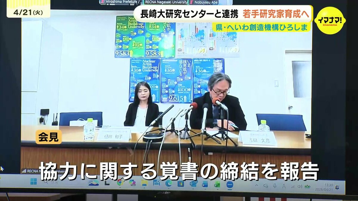 広島県と「へいわ創造機構ひろしま」が長崎大学の研究センターと核兵器廃絶に向けた連携協定を締結し、若手研究家の育成に取り組むと発表しました。