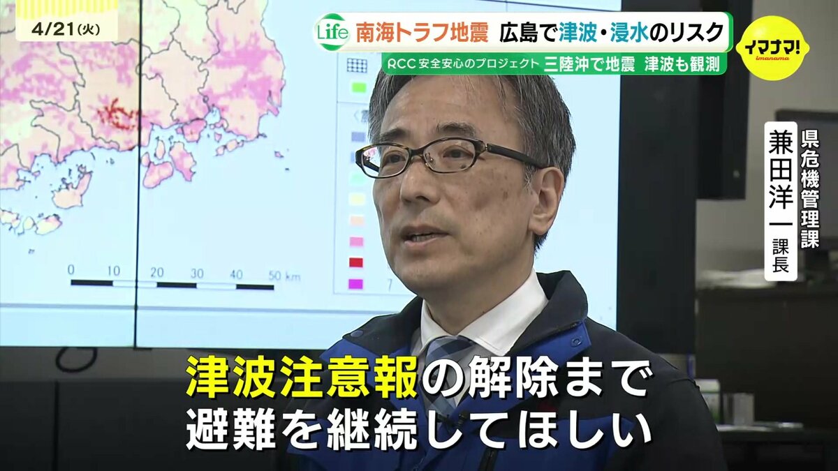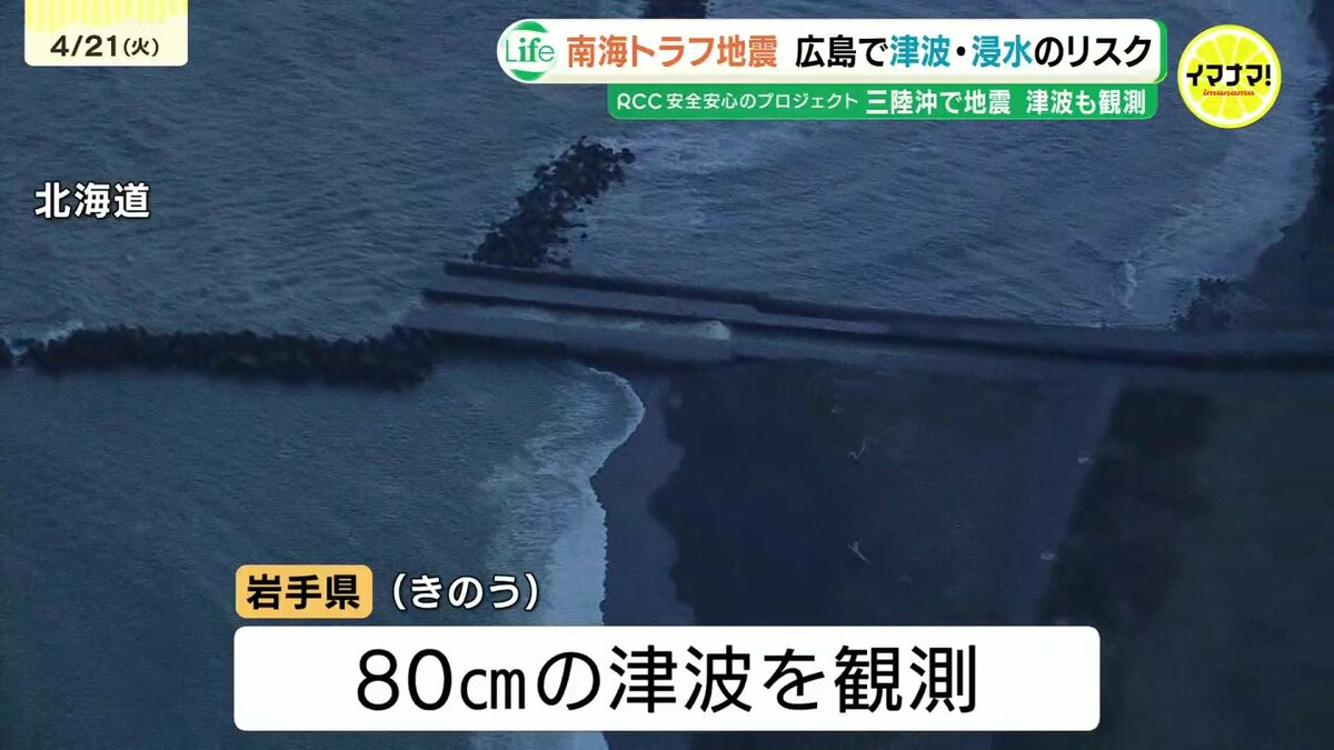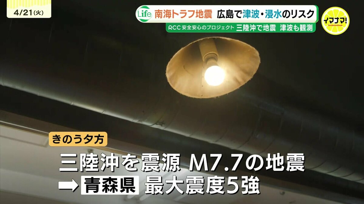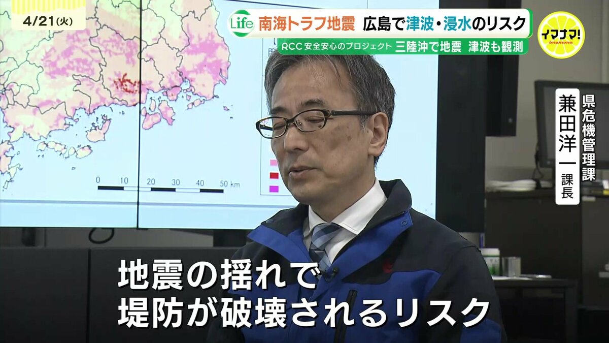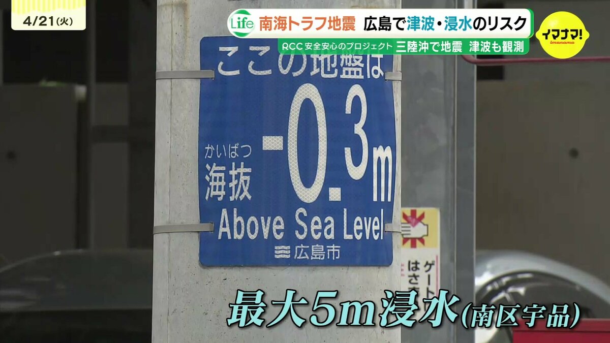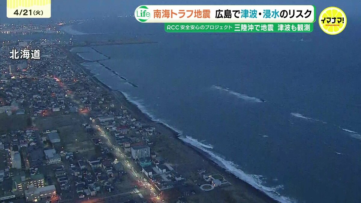 東北の三陸沖で20日に発生した地震では、津波も観測されました。今後、南海トラフ地震が発生した場合、広島県では津波に加え、浸水するリスクを抱えています。