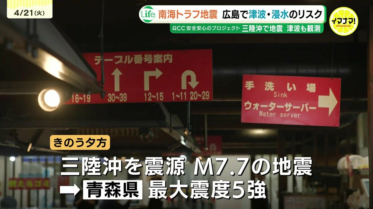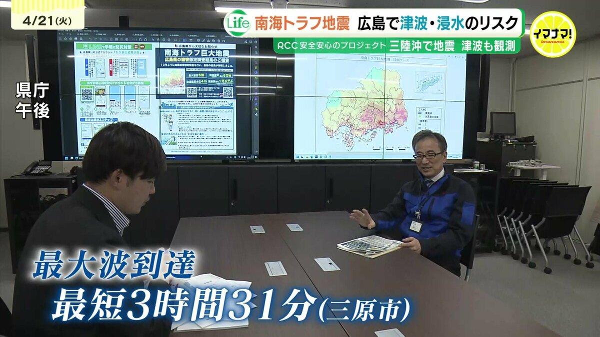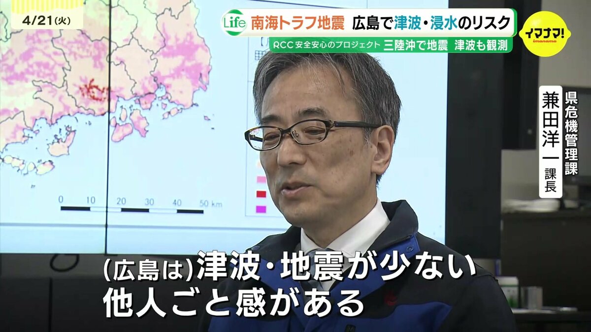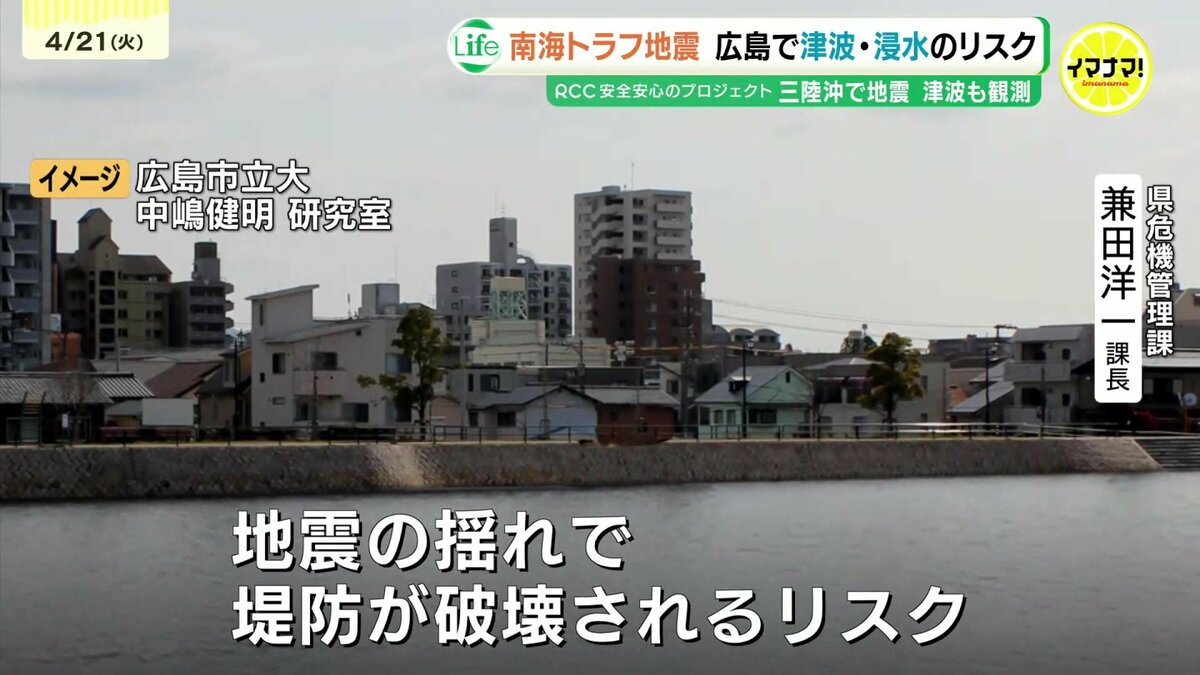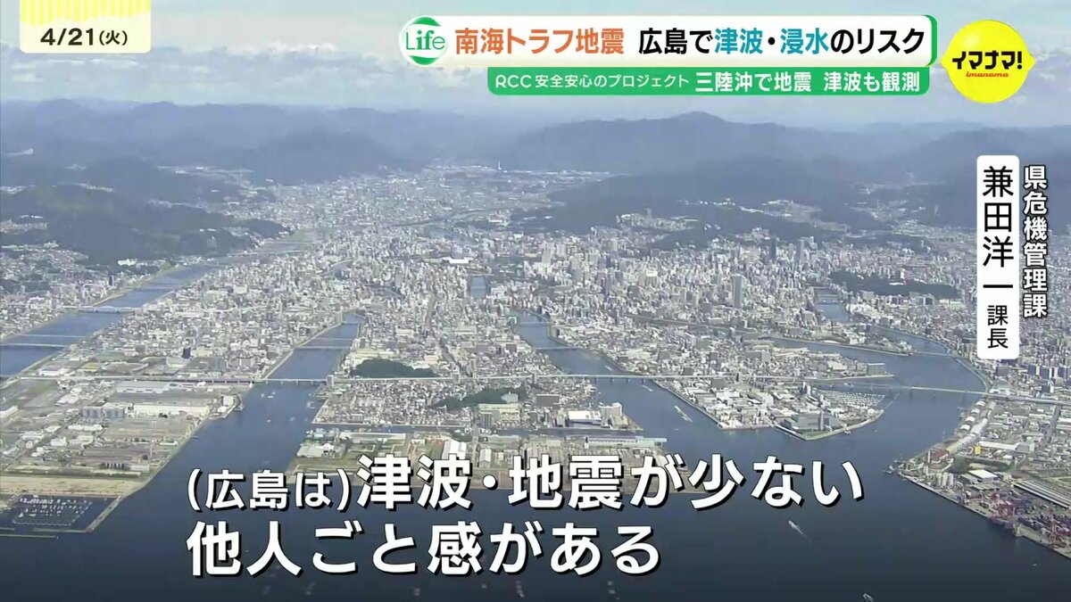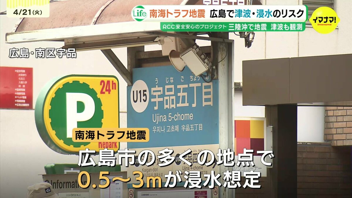 東北の三陸沖で20日に発生した地震では、津波も観測されました。今後、南海トラフ地震が発生した場合、広島県では津波に加え、浸水するリスクを抱えています。