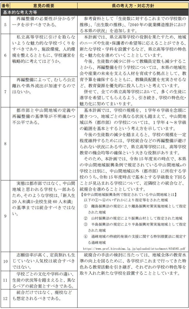 広島県立高校の再編計画をめぐり、パブリックコメントの結果が公表されました。広島県教委は意見を踏まえ、5月に実施計画を策定する予定です。
