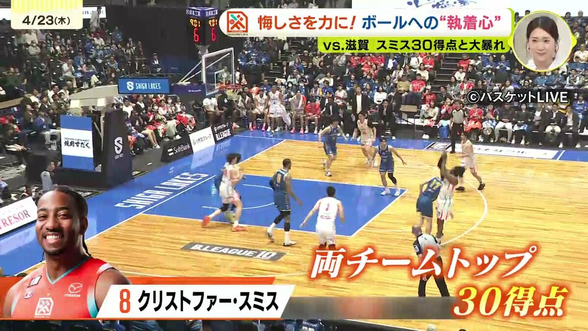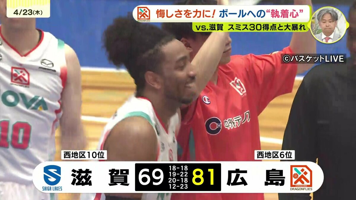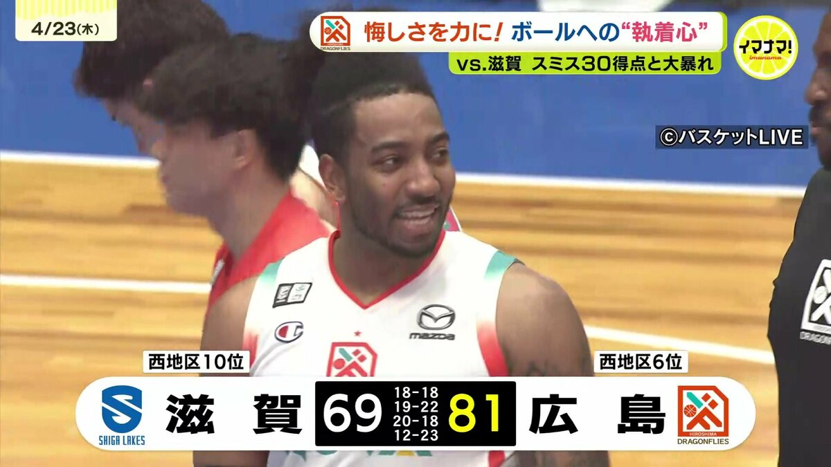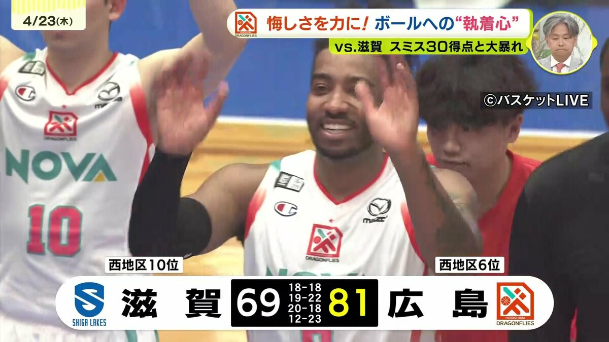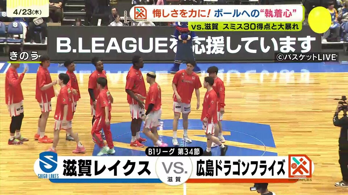 広島ドラゴンフライズは22日、アウェイで滋賀レイクスと対戦。