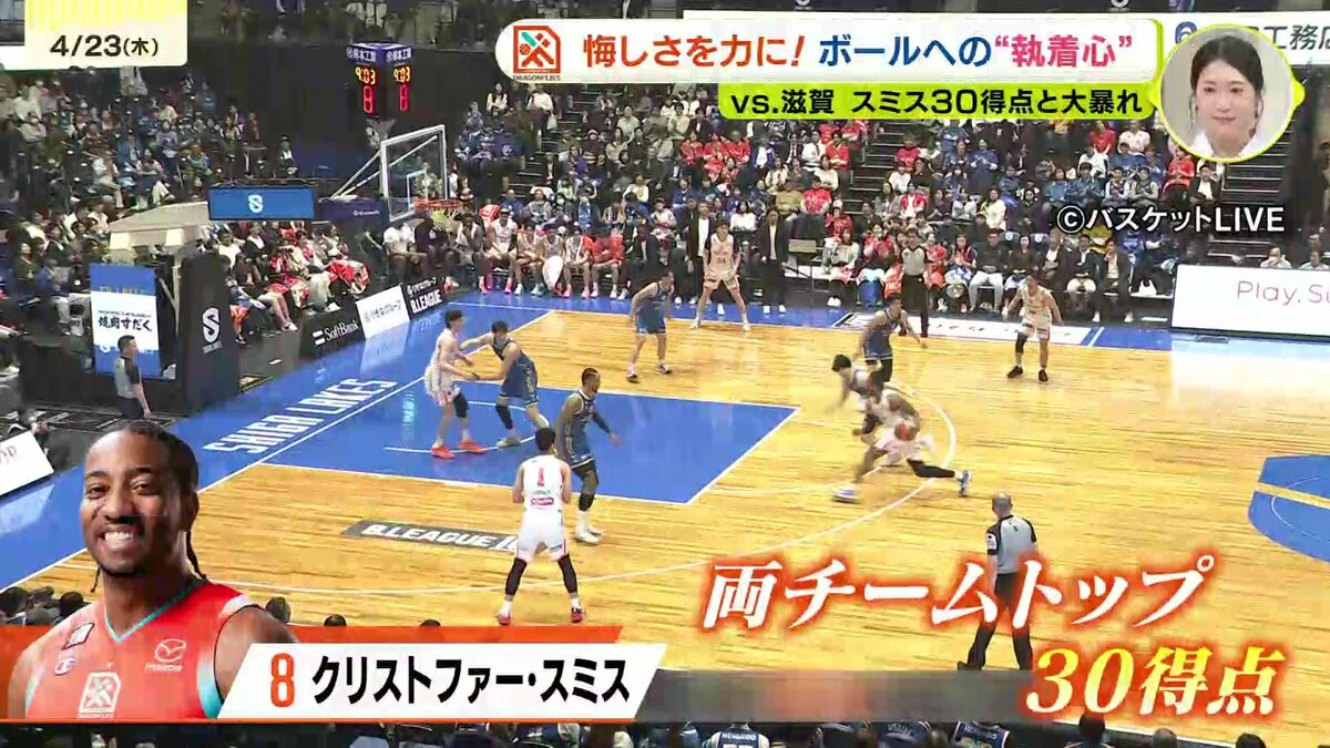 泥臭くボールを追い続ける姿勢を貫いたドラゴンフライズが、12点差をつけて滋賀に快勝。